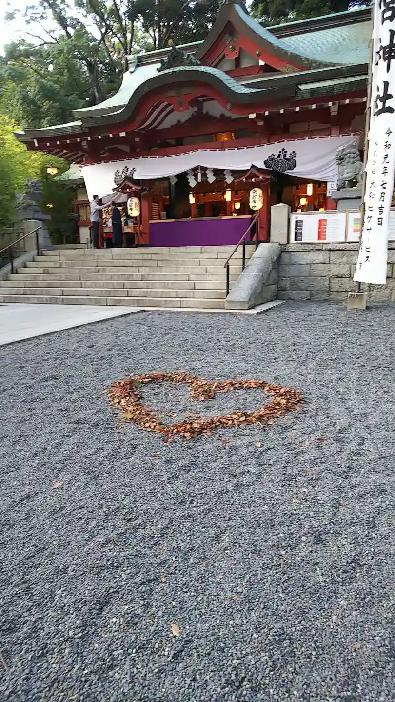拝殿前には落ち葉でハート型どり、可愛らしい♪