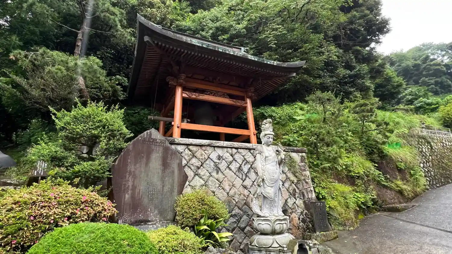 開創当時は真言宗。天文七年 (1538)十一番札所である、長源寺三世、圓芝春徳によって、曹洞宗に改宗。伊東七福神 福寿財宝の神布袋尊を祀る。1100年代の昔、工藤祐経のうらみを受け不慮の死をとげた河津三郎祐泰(曽我兄弟の父)の菩提をとむらって、父伊東祐親が建てた寺。鐘楼堂の上の高台には日本三大仇討ちの一つ、曽我兄弟の首塚と、父祐泰の墓がある。
