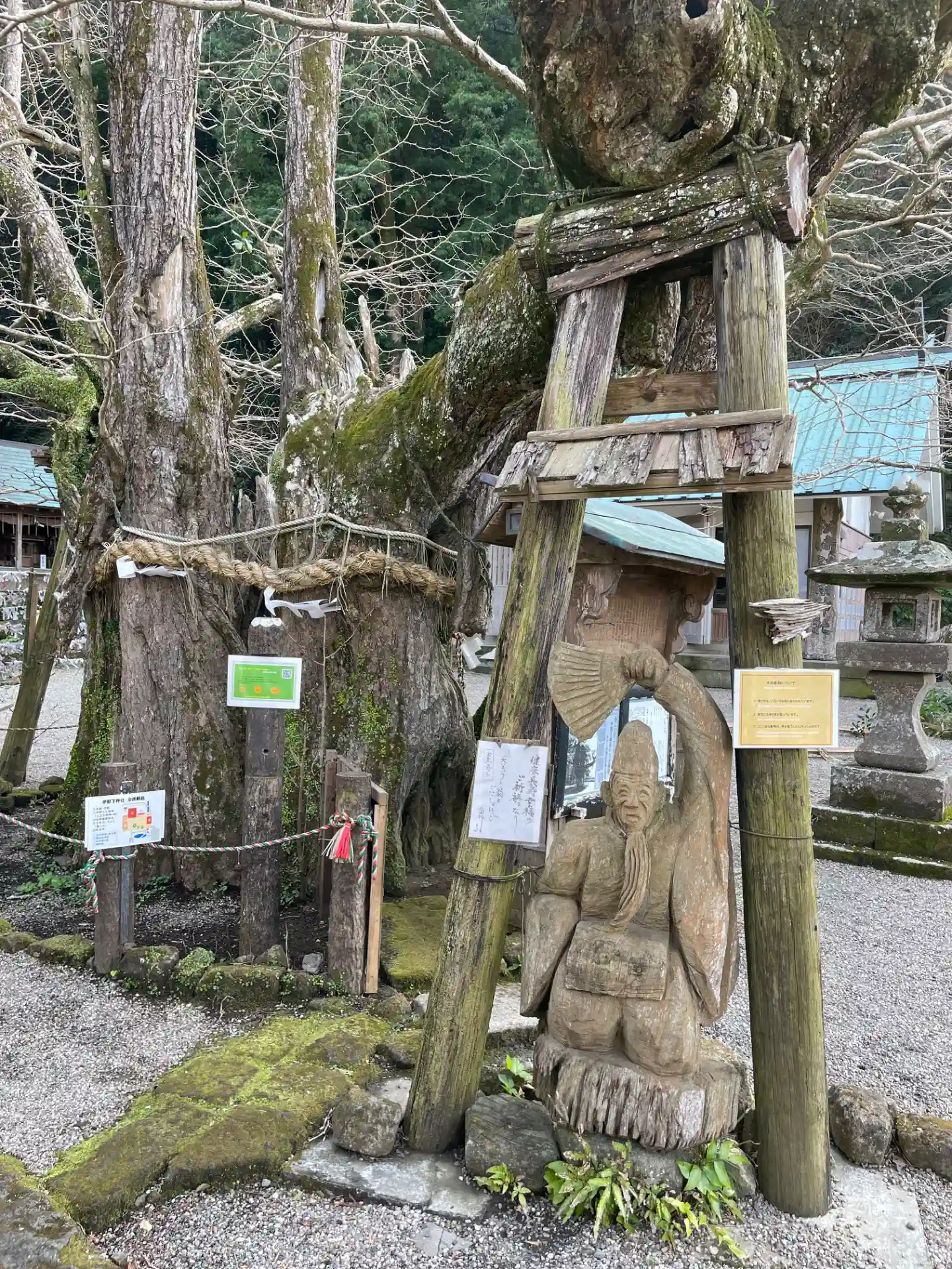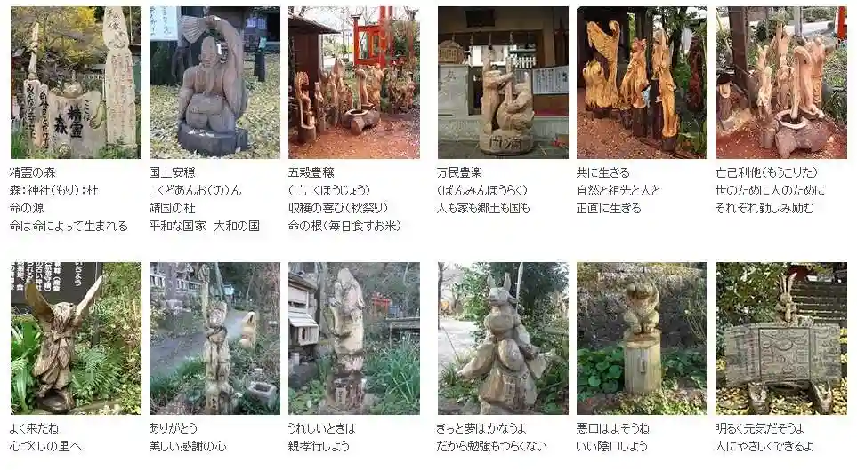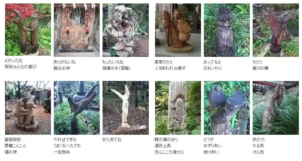 境内のあちこちに宮司さん作の彫刻があって、まるで精霊のようです。
