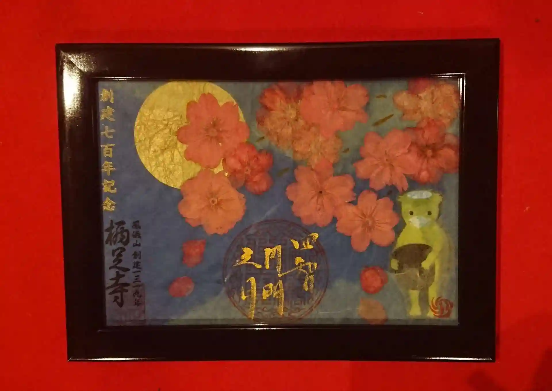 栖足寺創建700年を記念して、本物の桜の押し花をあしらった御朱印を額入り、数量限定でお出しいたします。