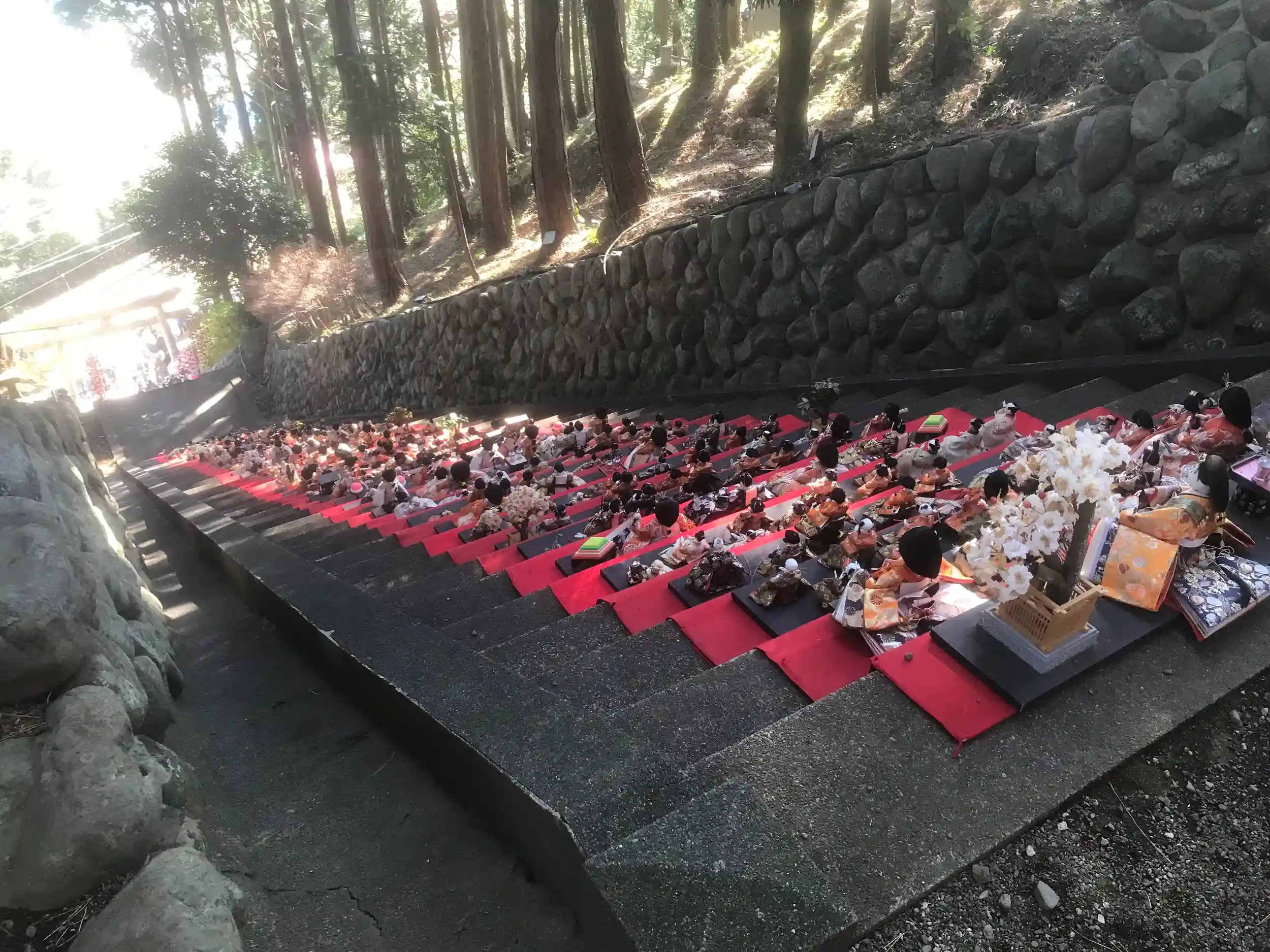 テレビのニュースで素戔嗚神社の参道の石段に並べられた雛人形を見て東伊豆に行って来ました。河津桜も今が盛りとのことでまず花見からと思ったのが失敗。修善寺から天城、河津まで断続的に大渋滞。花見は車中からだけにして素戔嗚神社に向かうも予定より3時間ほど遅れて雛壇を片付ける15時ギリギリに到着。なんとか参拝、御朱印も頂けました。帰路は東伊豆から北上し、冷川経由で修善寺へ。修善寺から新東名までの渋滞は仕方ないとして、河津、天城経由よりは格段に早かったのでは。