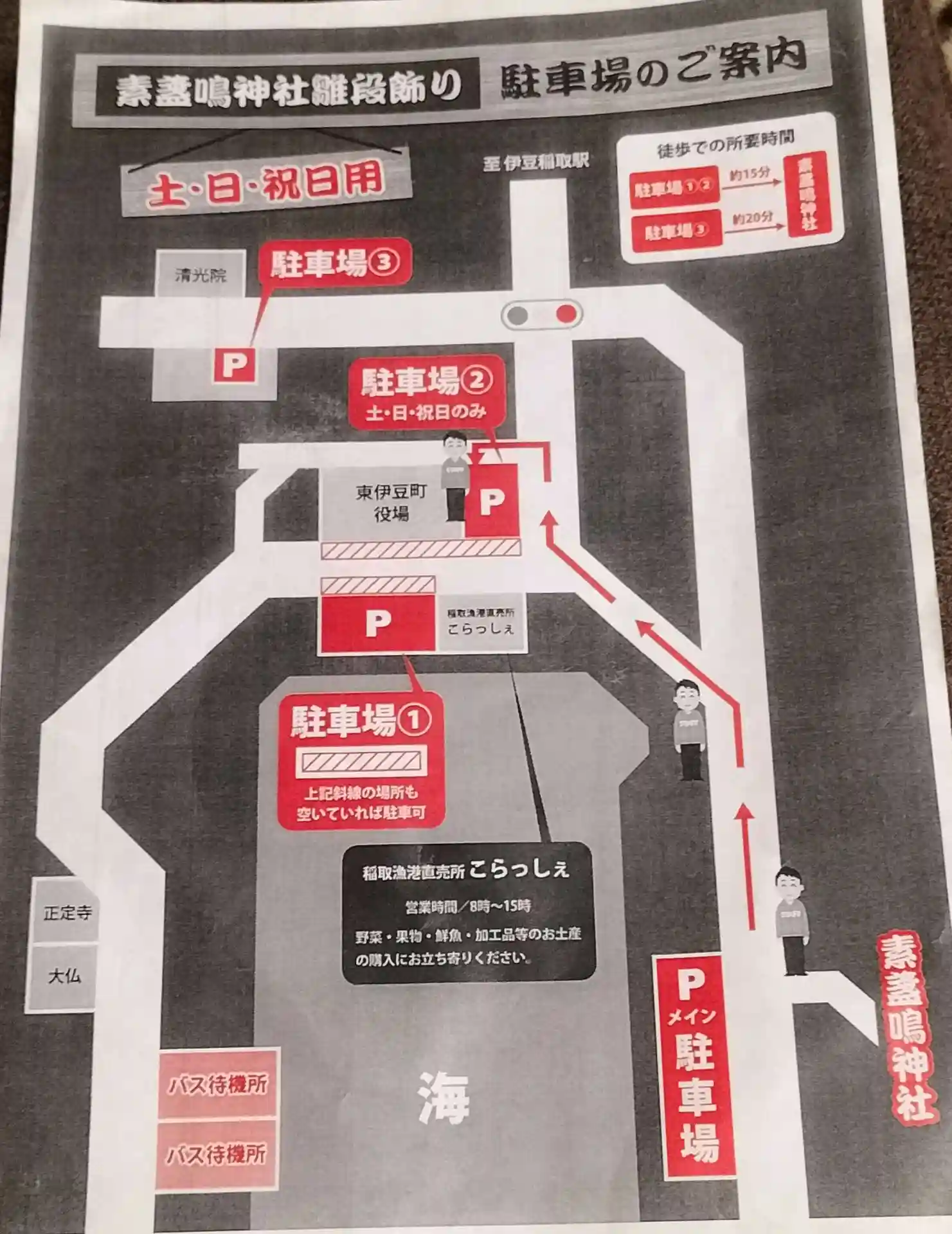 駐車場の1Fは朝市の会場になっています
