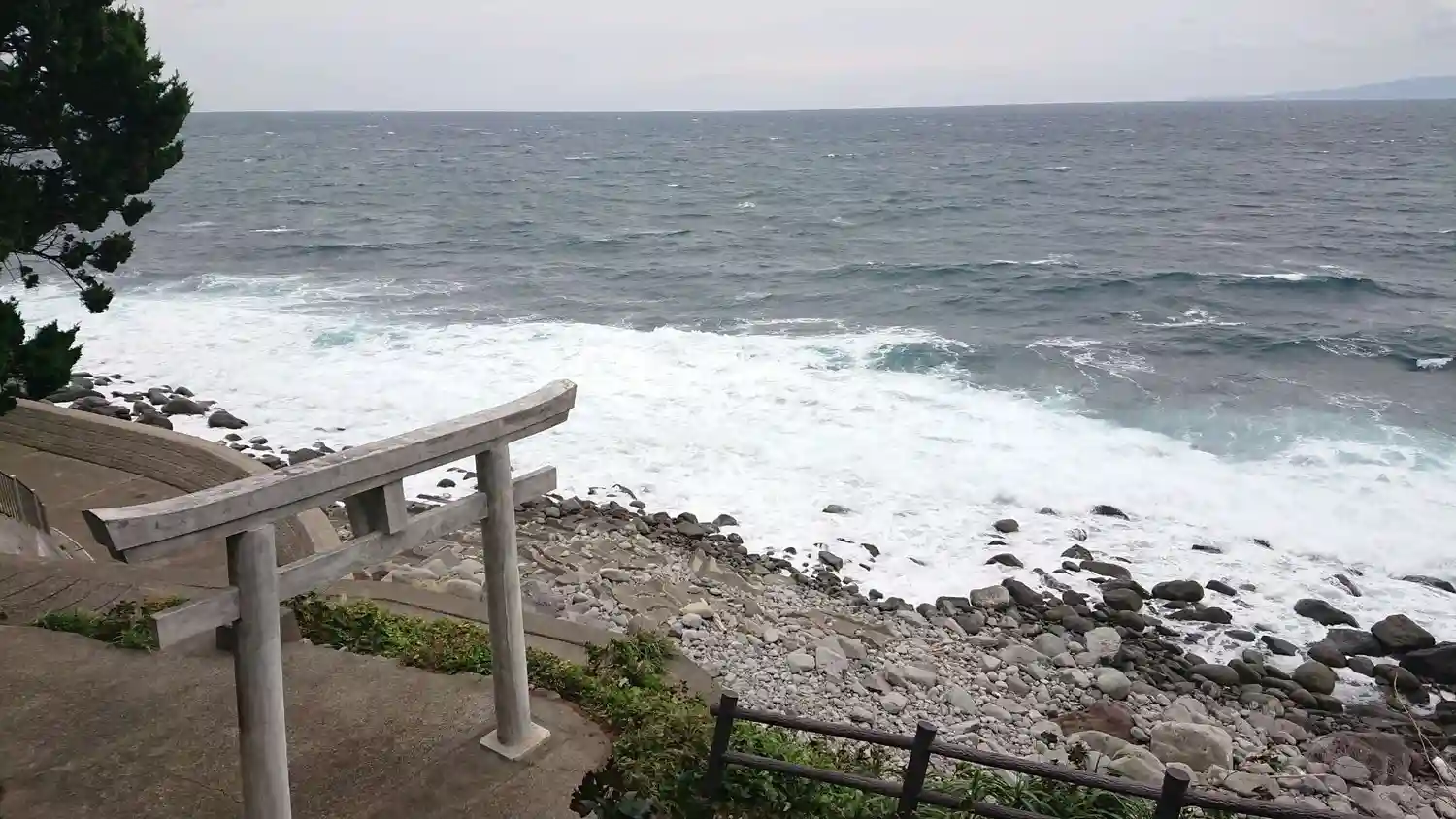 海岸沿いに鳥居があります