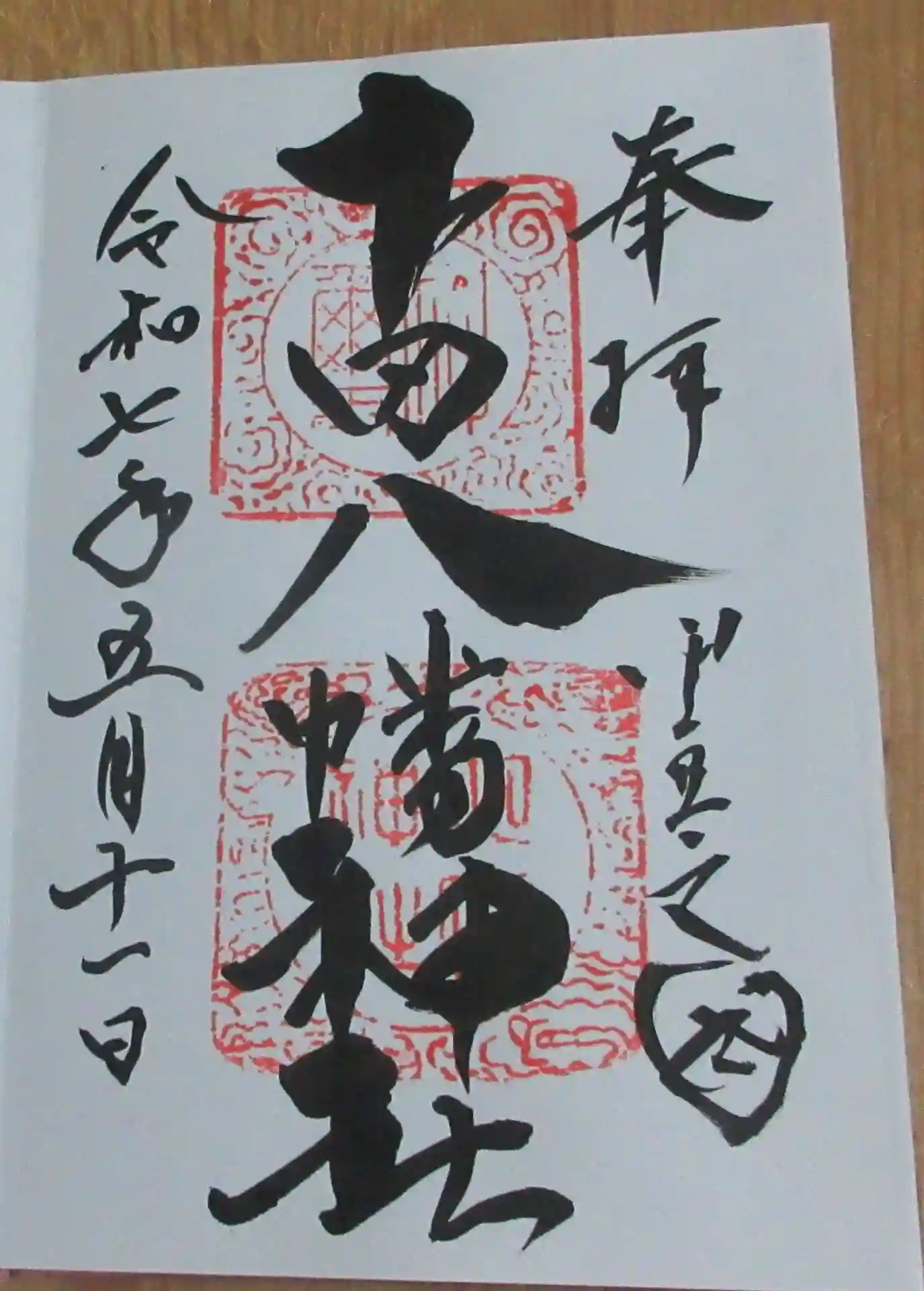 時期限定なのか不明ですが、社務所で御朱印を無料で準備されていました。年号は記入済みなので月日をセル…