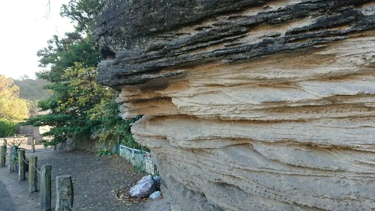 地層面上には生痕化石(貝などの生物が穴をほったり這い回ったりした跡の化石)も観察できます