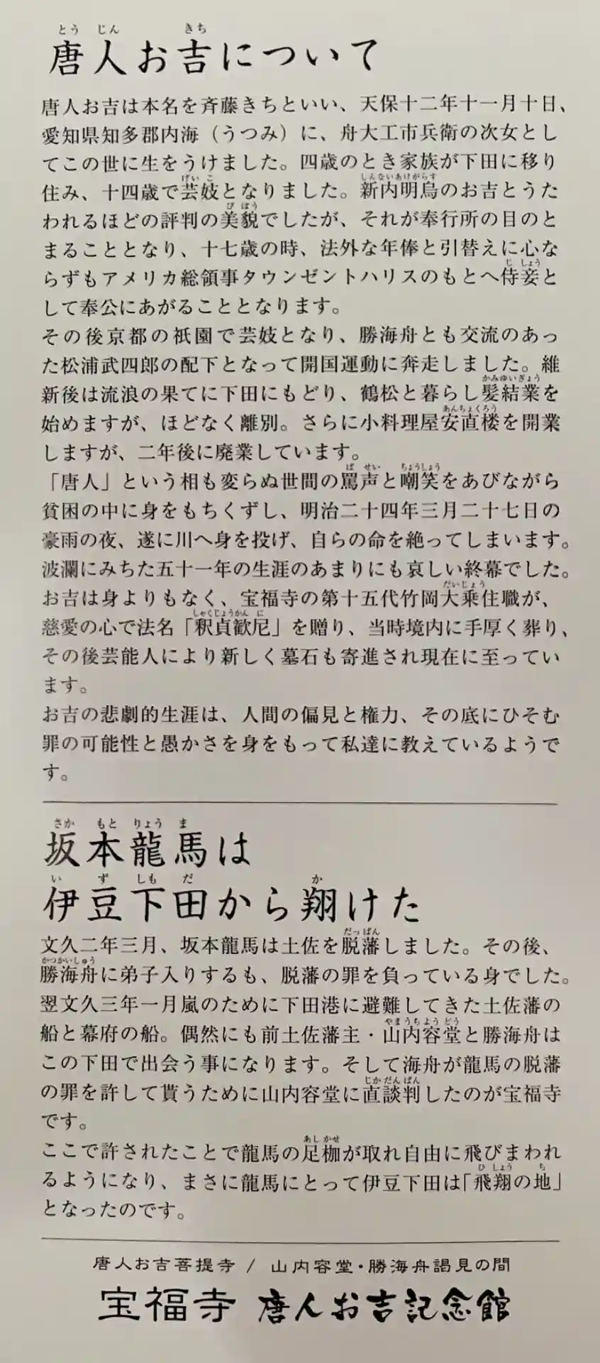 向かって左側が本堂、右側が唐人お吉記念館となっています。