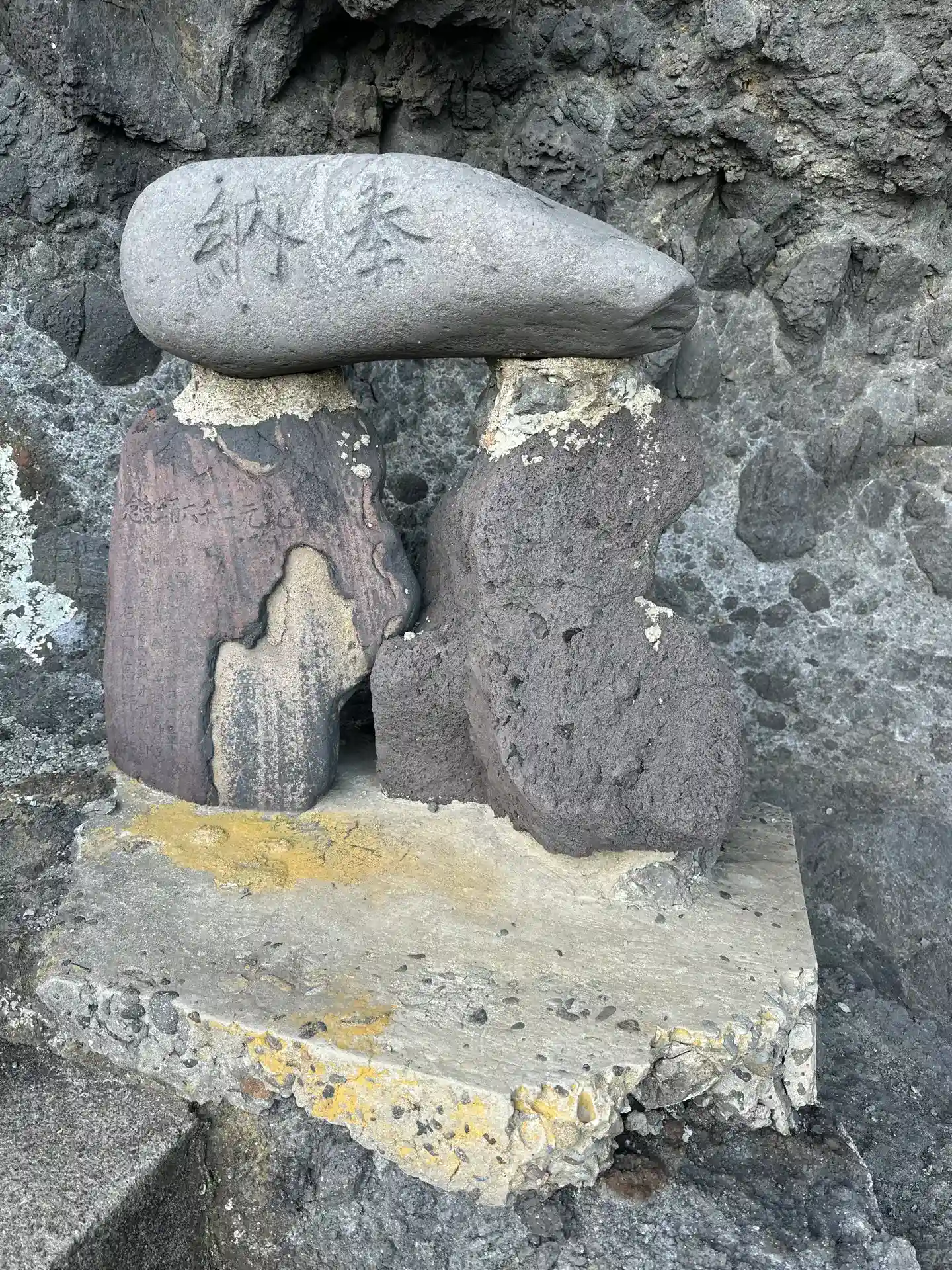 断崖絶壁(およそ30メートル)を石廊権現の社殿あたりまで、まるで供えたかのように打ち上げられた。