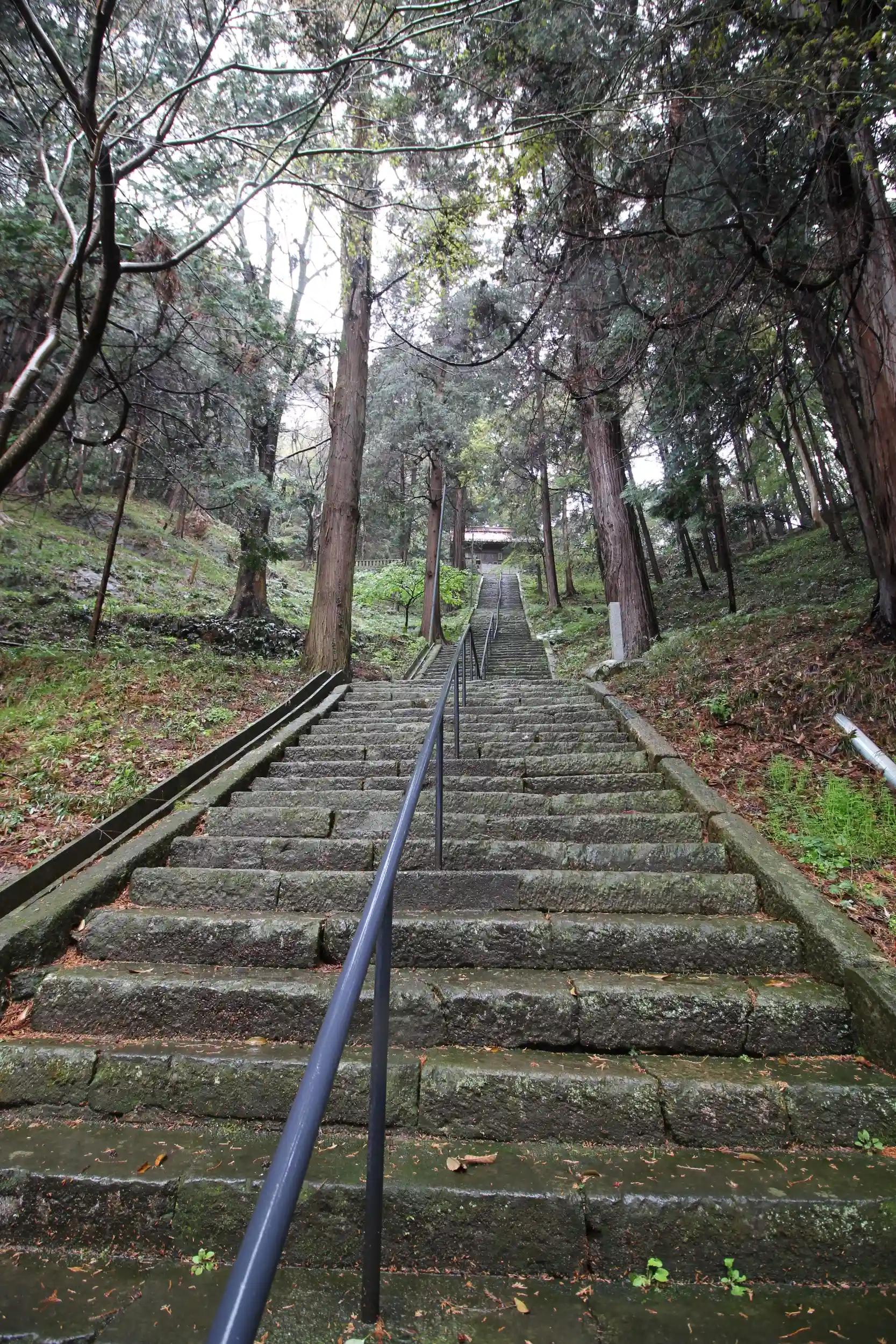 願成就院の隣に鎮座している源氏ゆかりの八幡さま⛩石段を登ると拝殿を兼ねた舞殿✨その奥に社殿へ続く長い石段があります😊石段は傾斜が急で幅も狭く💦この日は雨で滑りやすくもありましたがしっかりした手すりがあったので無事に登り下りできました💕