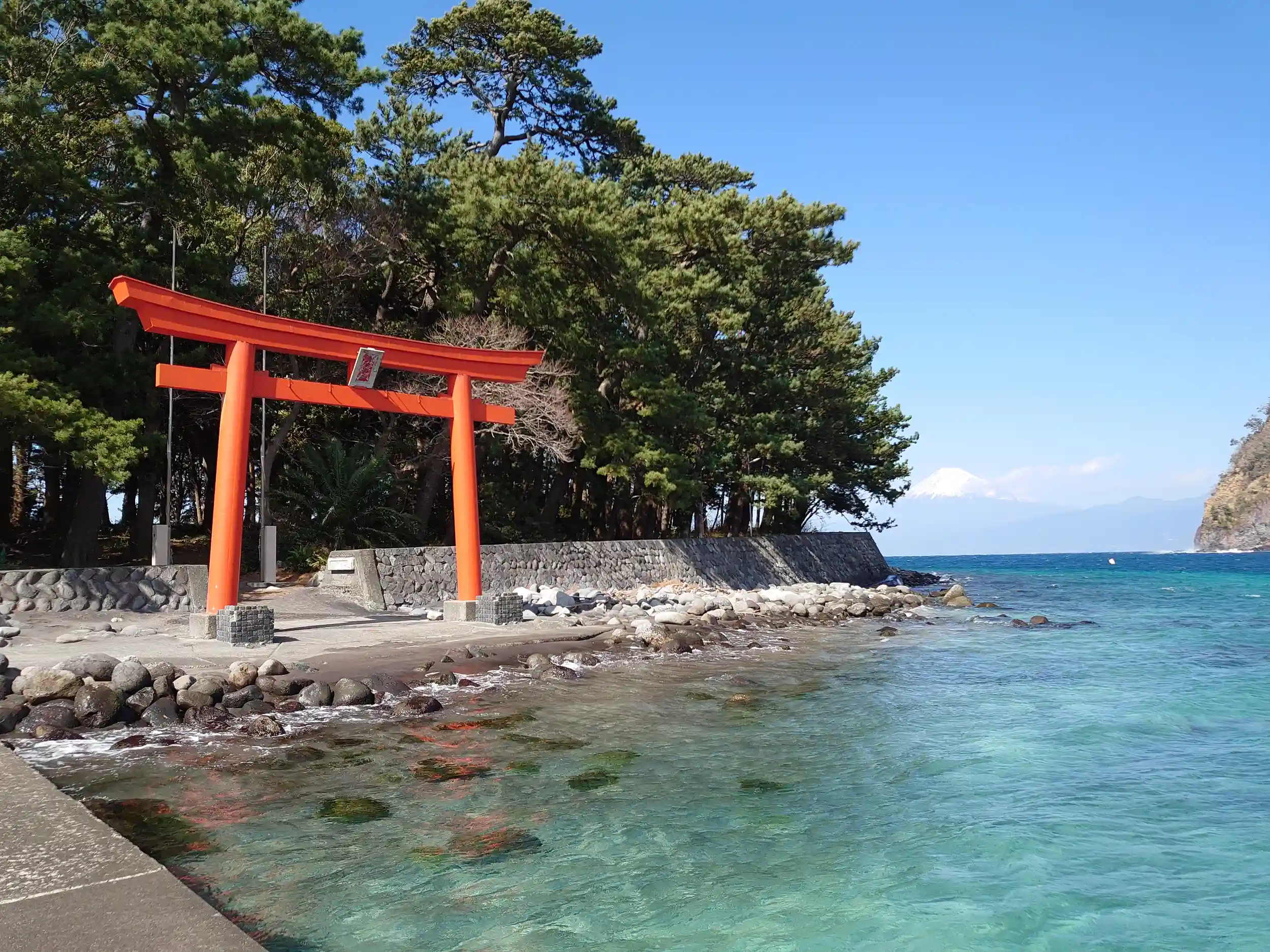 以前、通った時に見えた港の向こうに見えた鳥居。