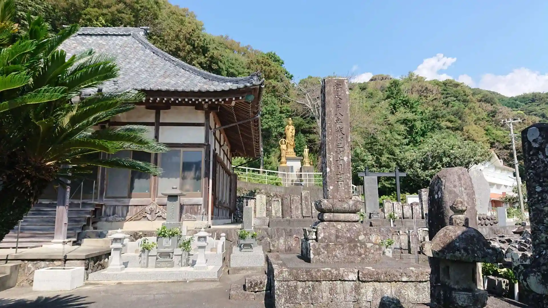 ・そこで3世観如院日理が躬らノミを打ち、等身大の観音像を彫りあげたところ、悲嘆と絶望に明け暮れていた村人はこの崇高な仏の慈顔を拝し、生気を取り戻して夫々の生業に励むことができたという。