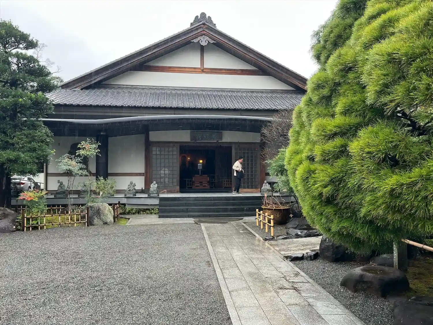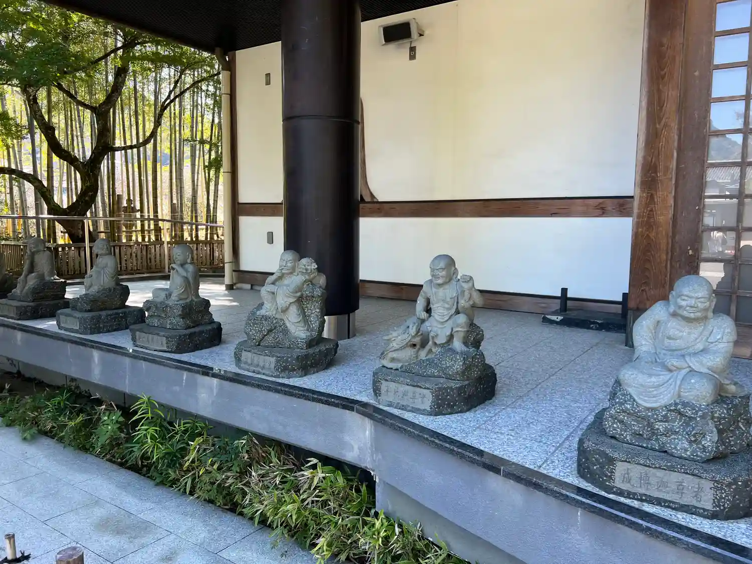雨の中、たくさんの人が訪れていました。境内のあちこちに仏像や羅漢像があり面白かったです。御朱印は書…