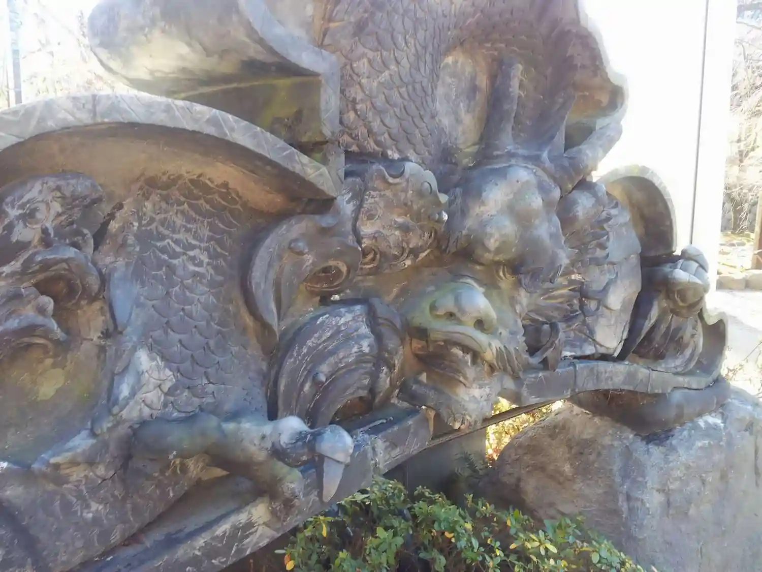 唐獅子が逆立ちをしています。