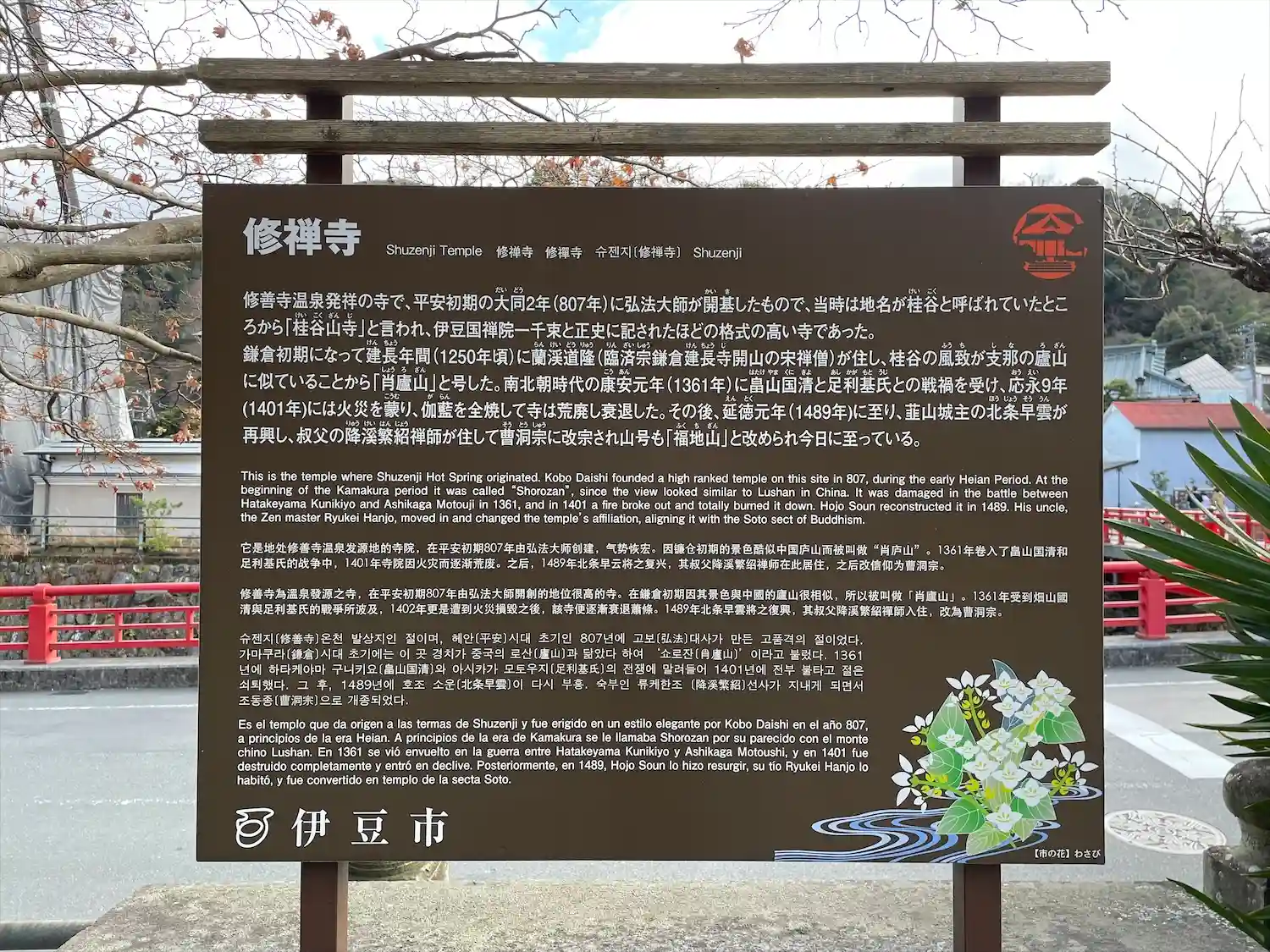 修禅寺。駅の名前は修善寺。
