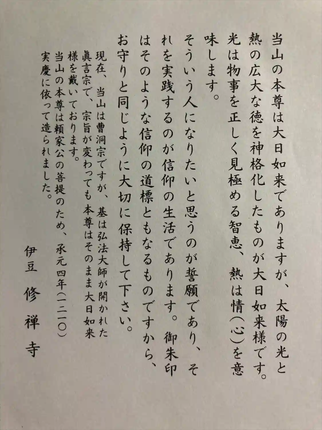 修禅寺〜御本尊・大日如来ご朱印
