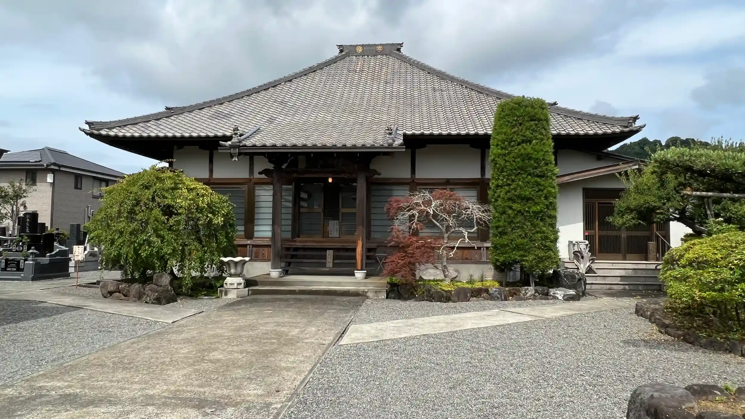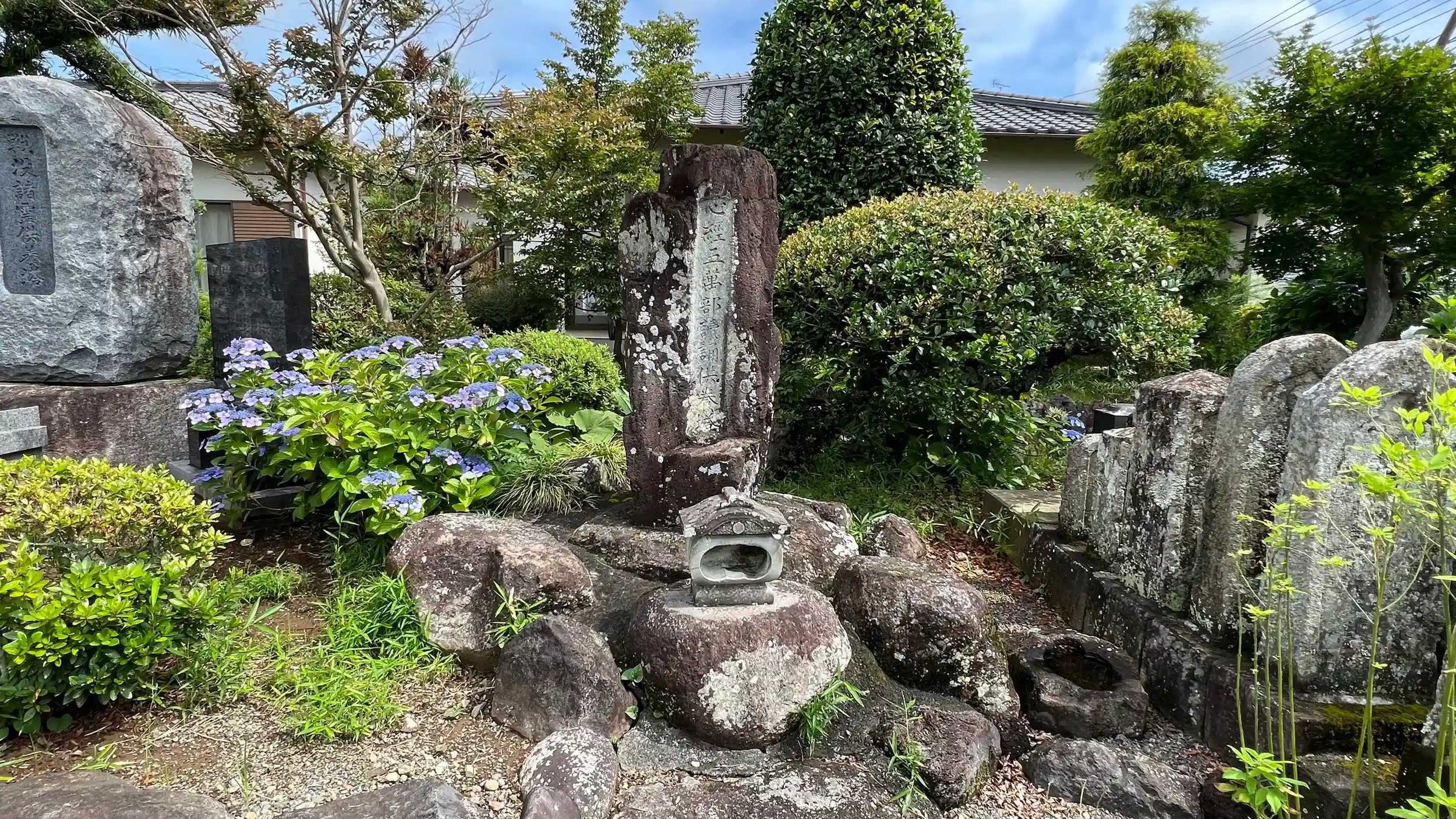 周囲に石碑がちらほら。入り口入って右側に色々古そうな供養塔、左側が会館。正面奥が本堂。