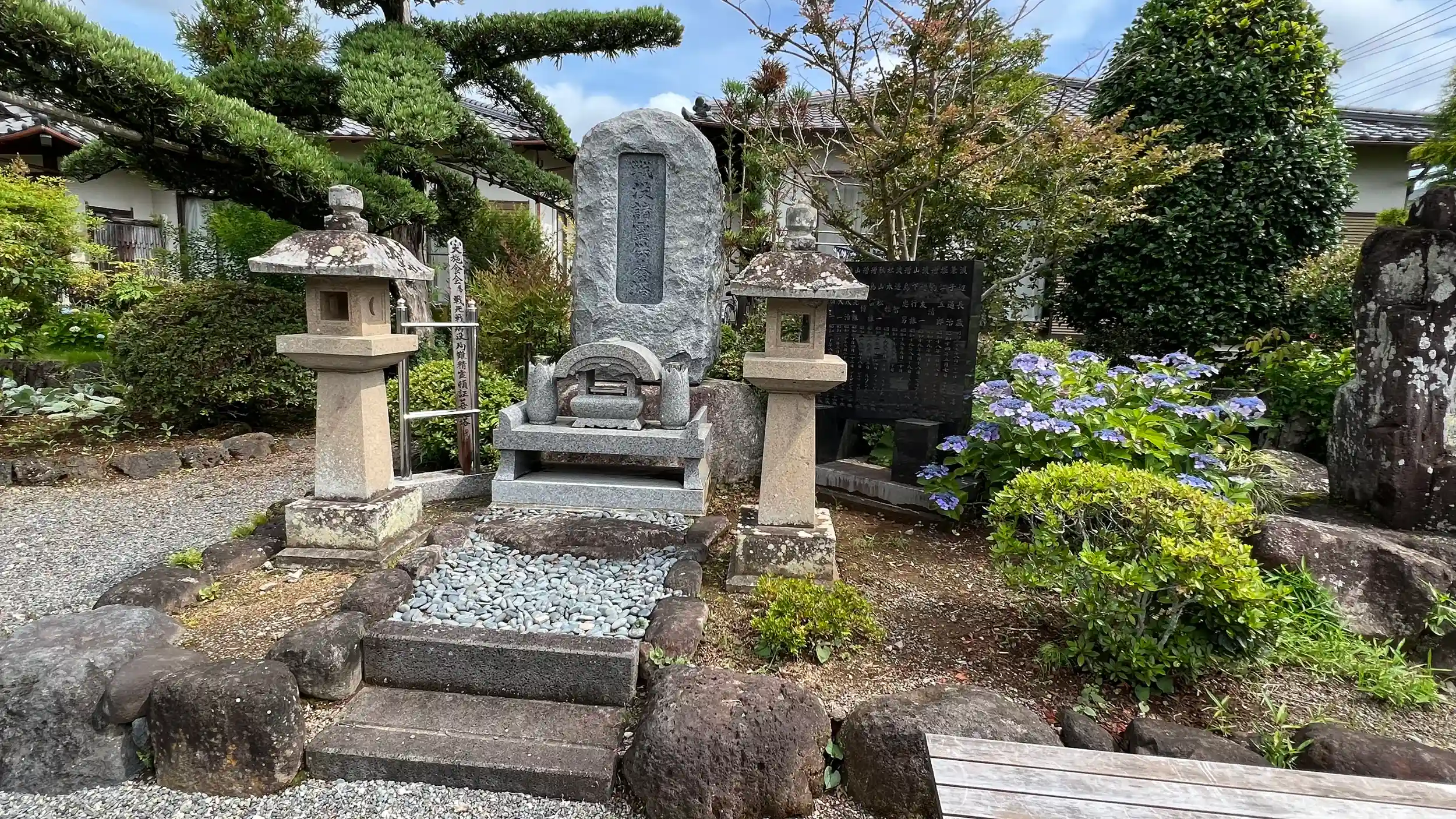 本堂左側がお墓ゾーンで、特に案内図はないが一番古そうなお墓が「頼朝公伝説・餅売媪之墓」一応立て看板があるが背が低いのでわかりにくい。