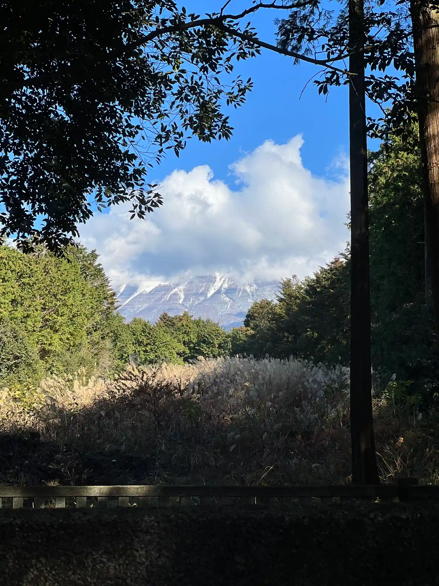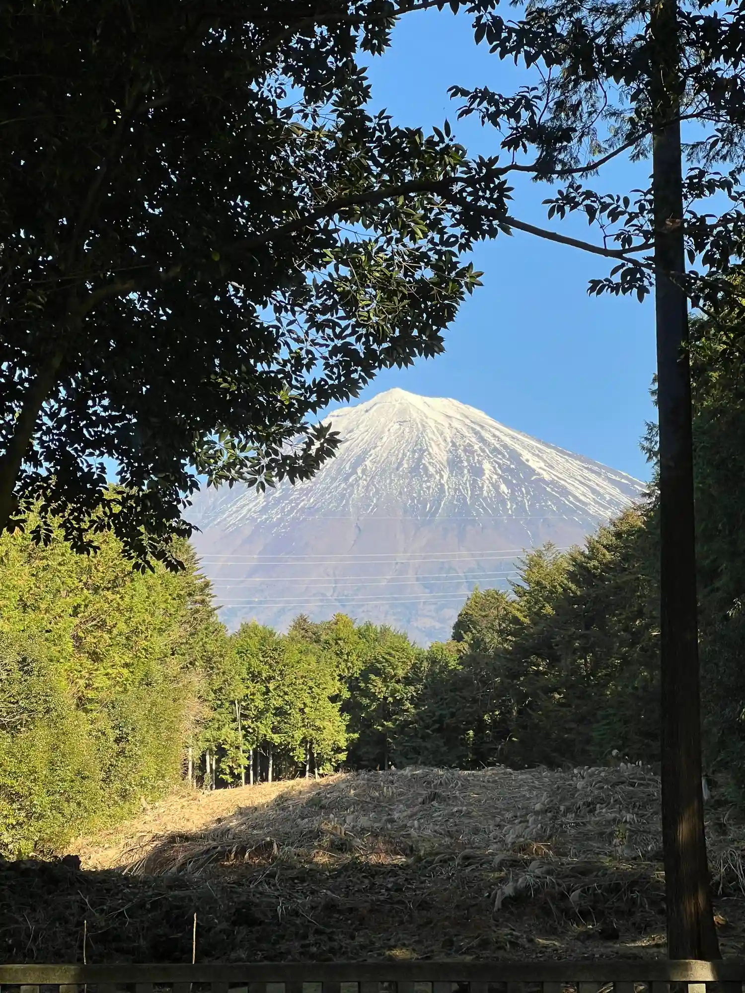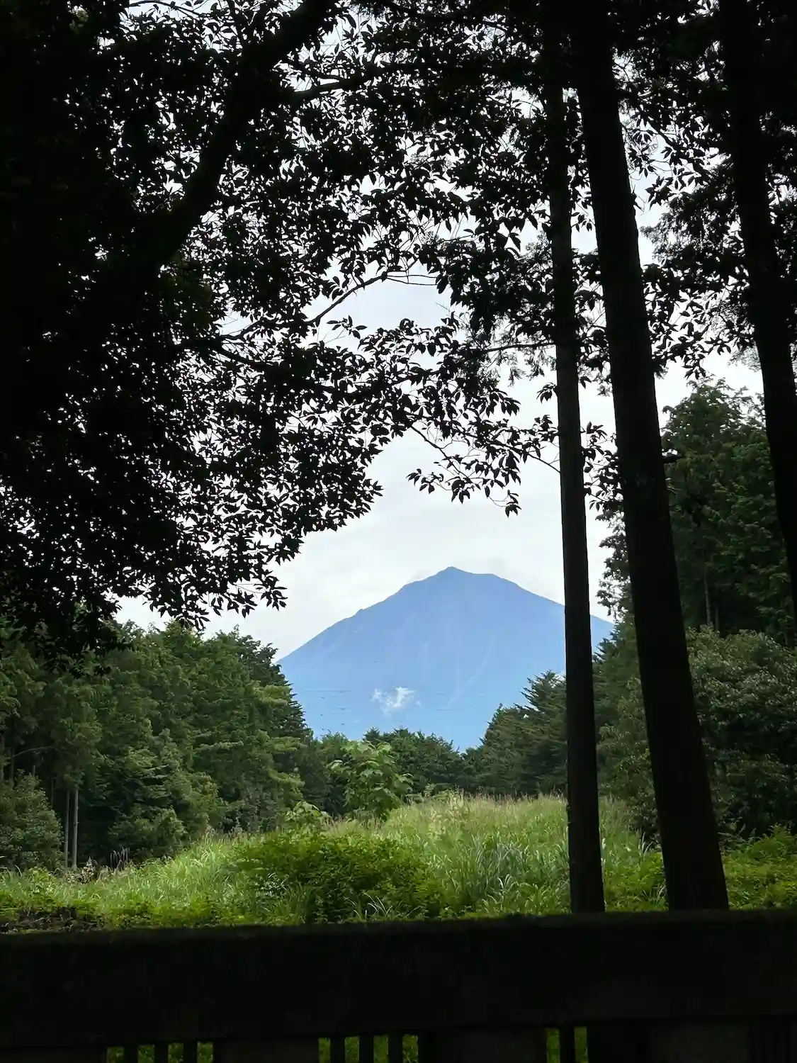 木の間から見事な富士山が拝めるはずでしたが、曇っていたため肉眼でかすかに確認できる程度でした。