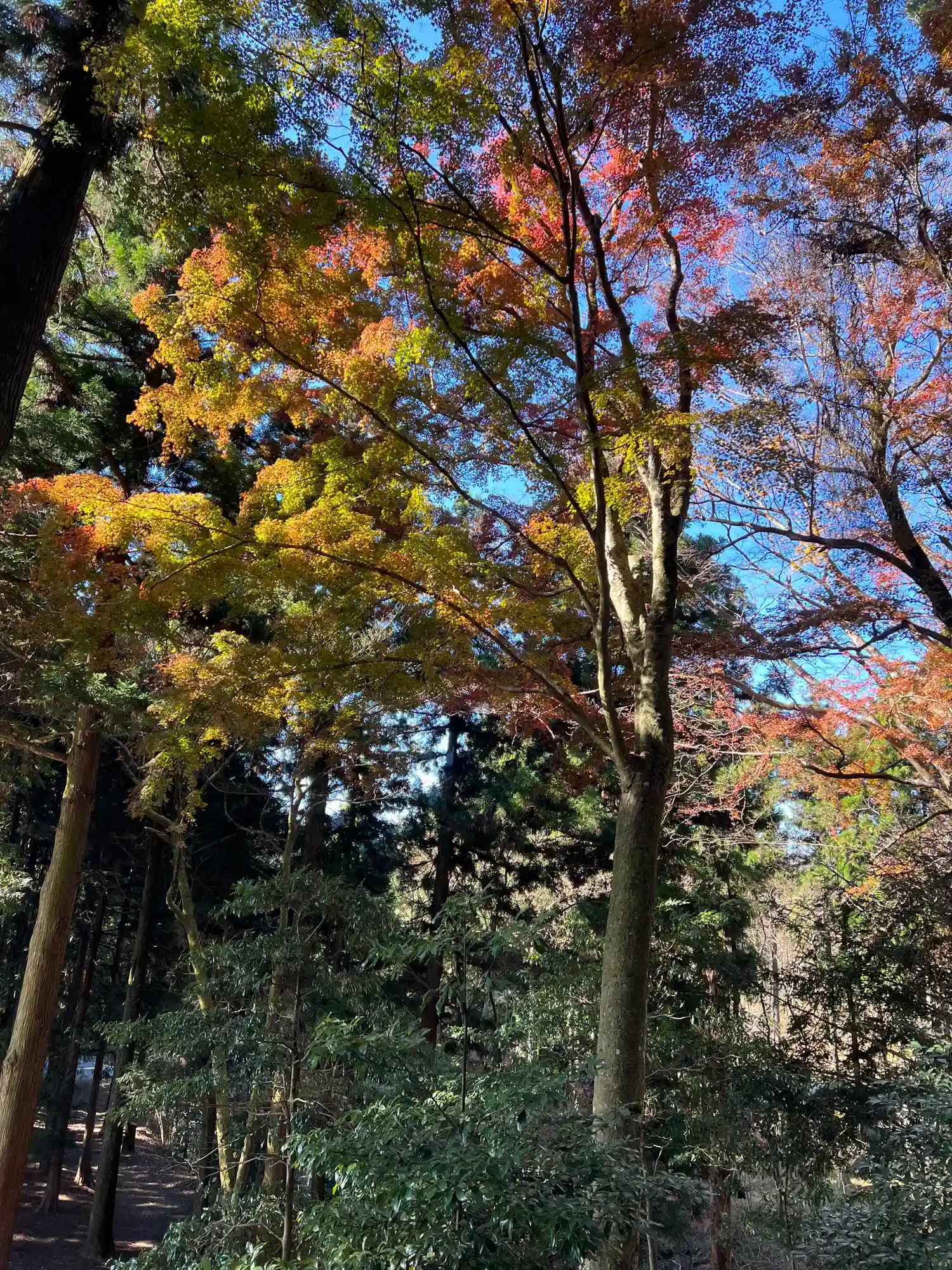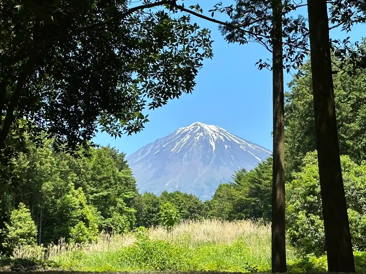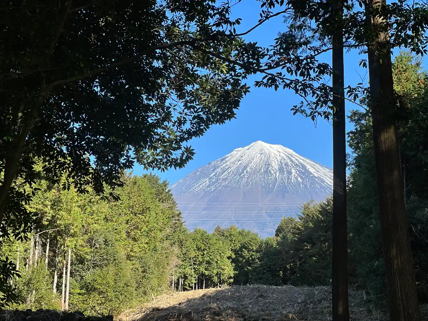 木の間から見事な富士山が拝めるはずでしたが、曇っていたため肉眼でかすかに確認できる程度でした。