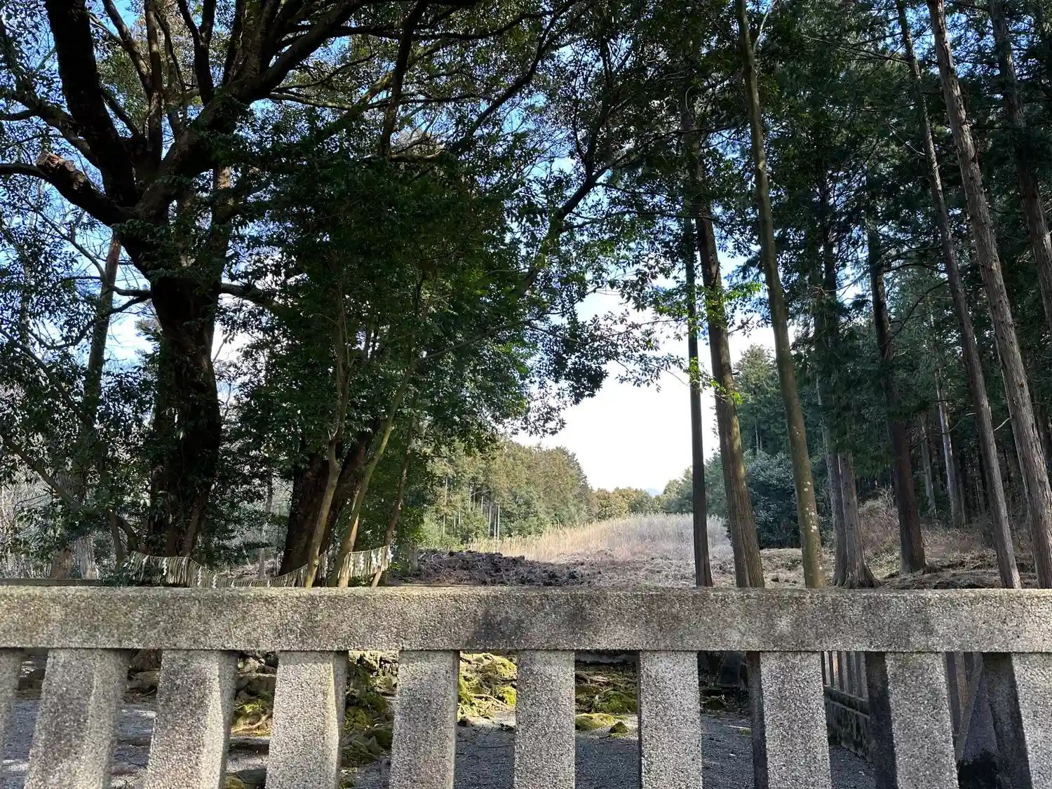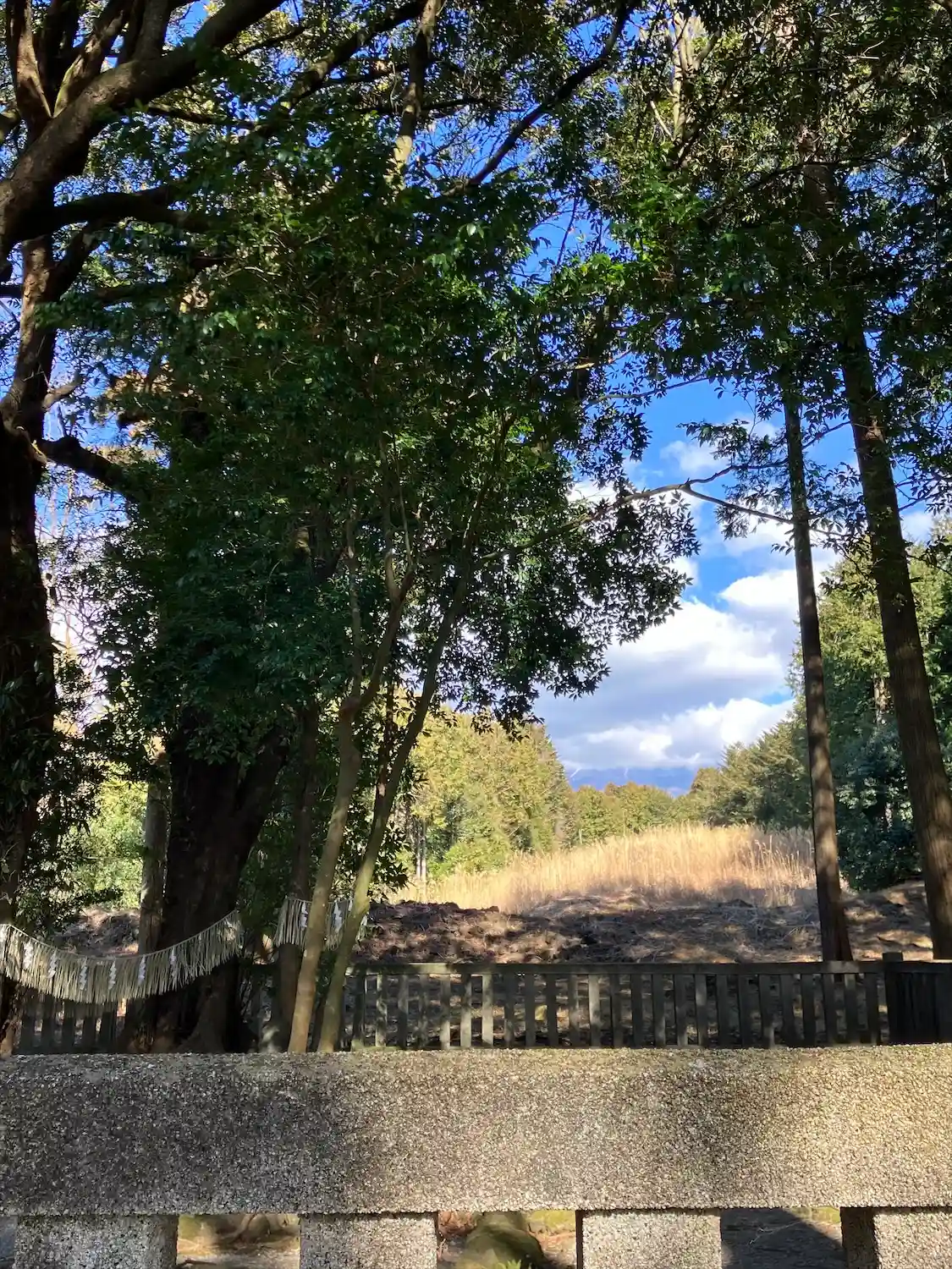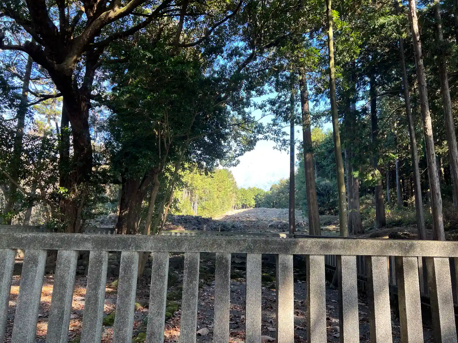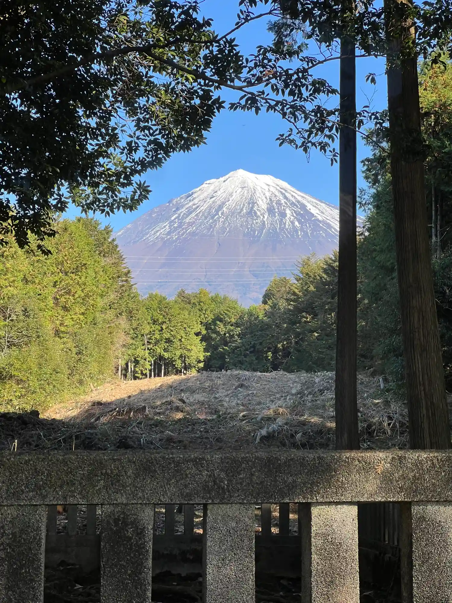 富士山の麓にあり拝殿や本殿が無い神社で遥拝所から視認出来るように山林の一部分が伐採されてました。