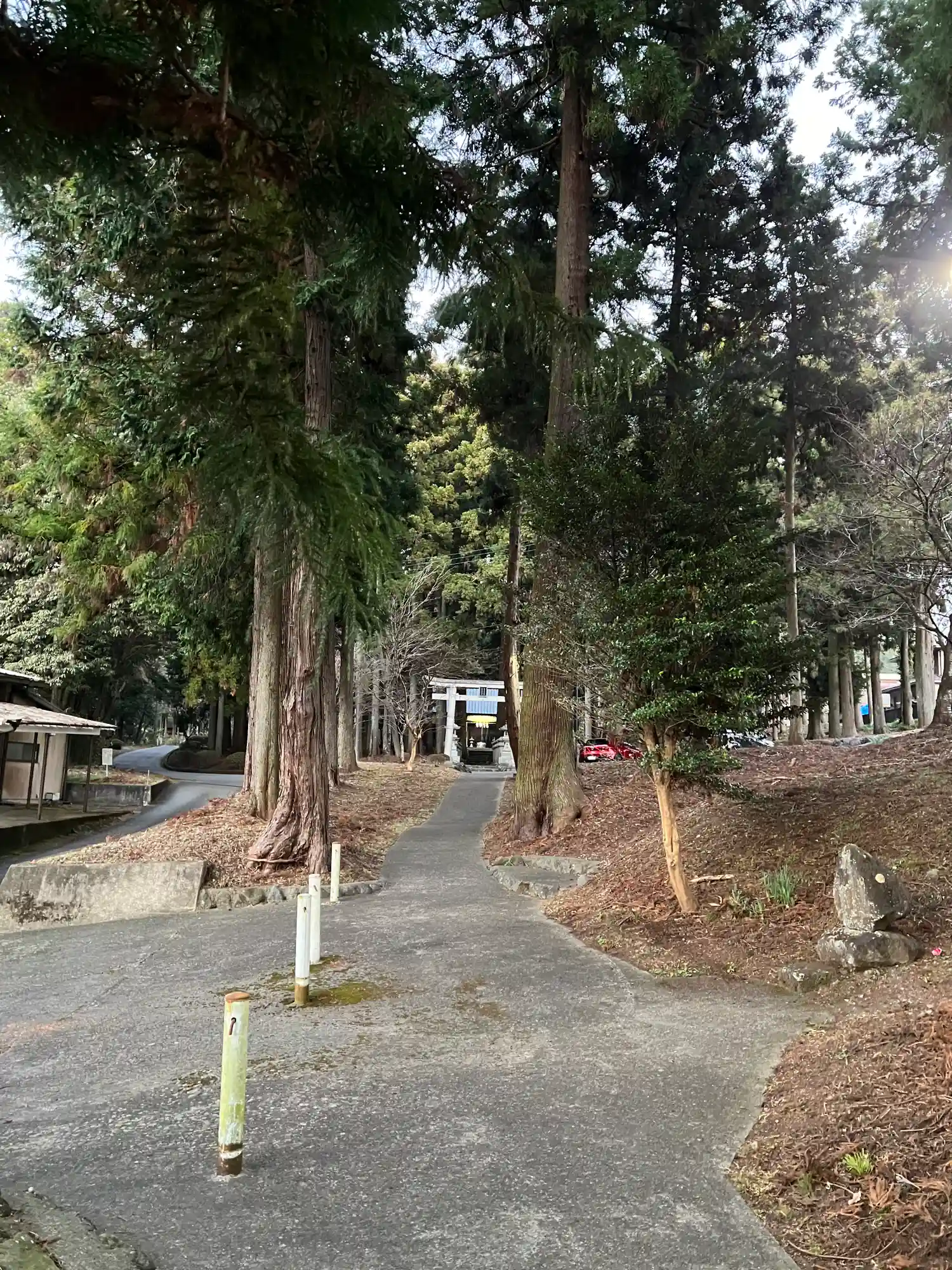山道の横にひっそりと有ますが、参道が長く真っ直ぐに続いて…