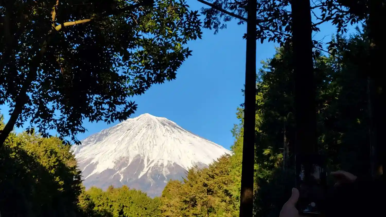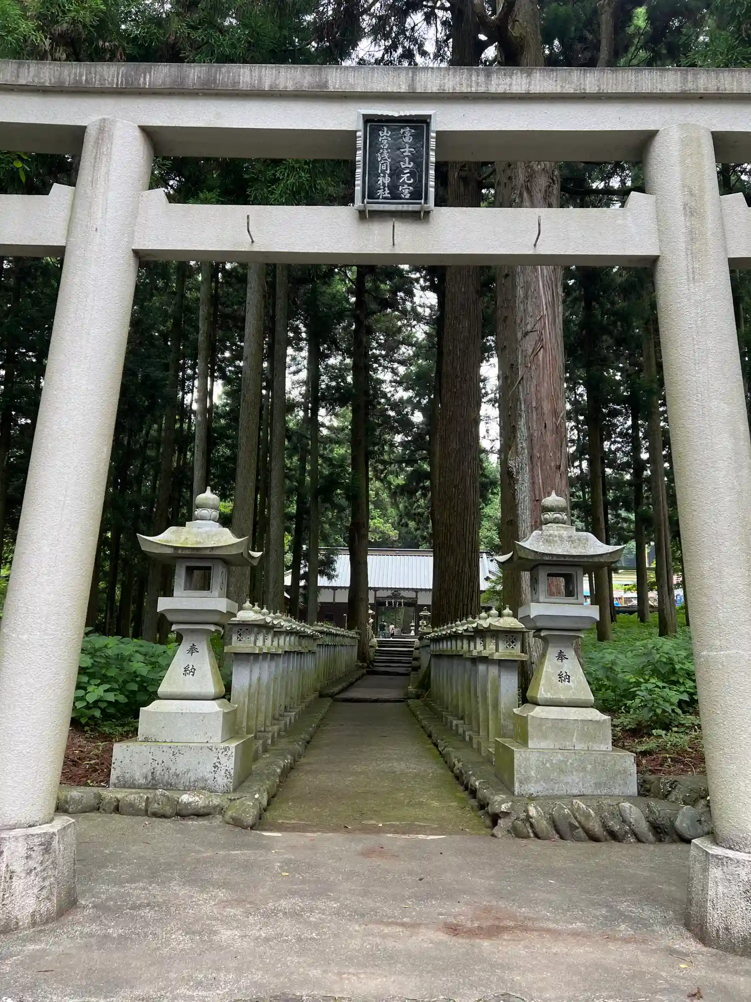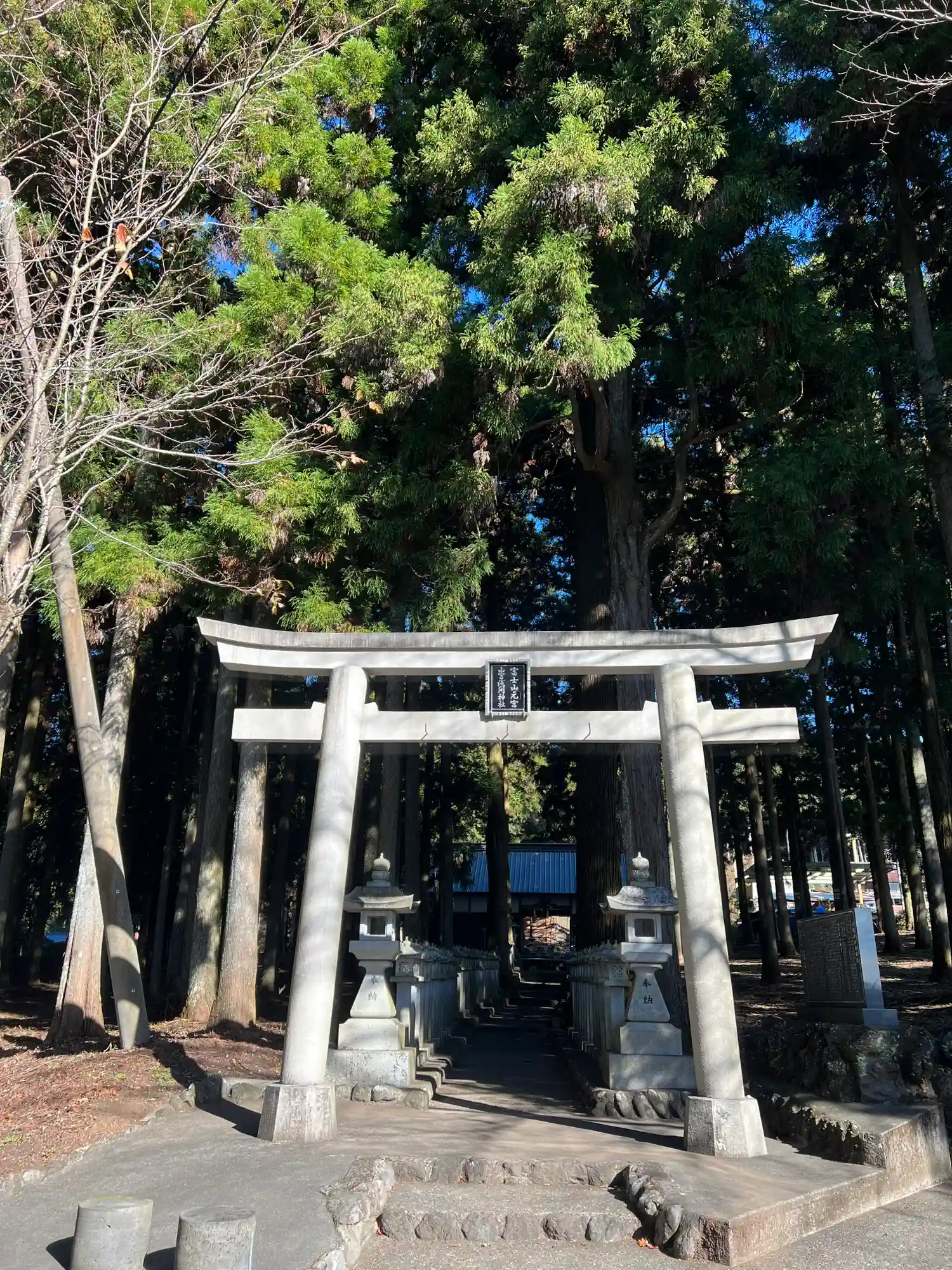 うっそうとした木々の間から見える霊峰富士そのものが拝殿となる山宮浅間神社です…
