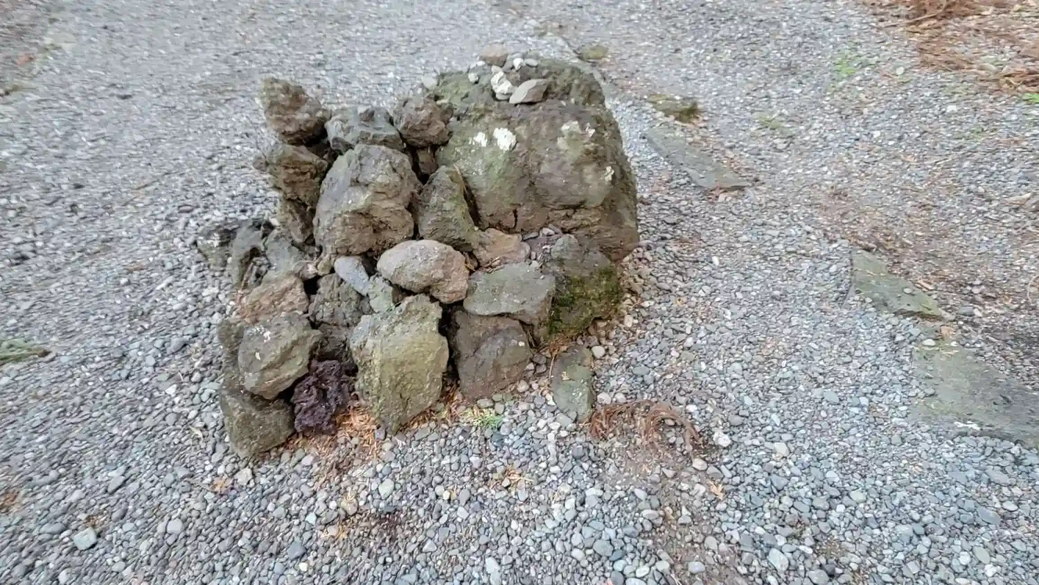 「山宮御神幸」で神の宿った鉾を休めるための鉾立石(真ん中)