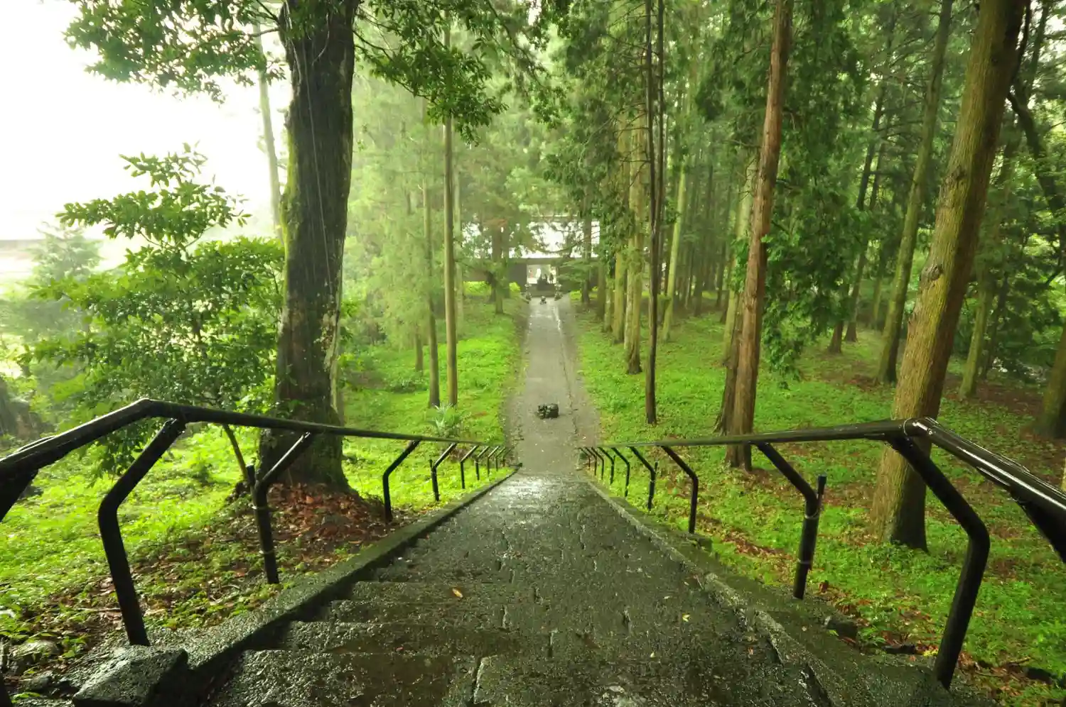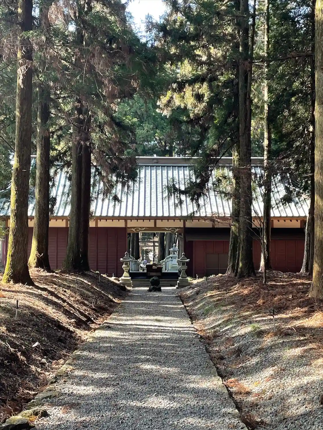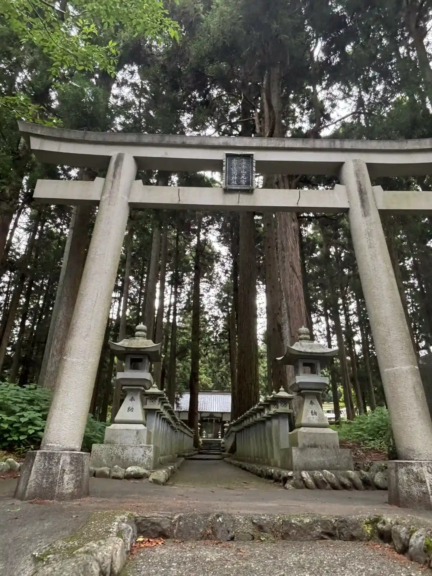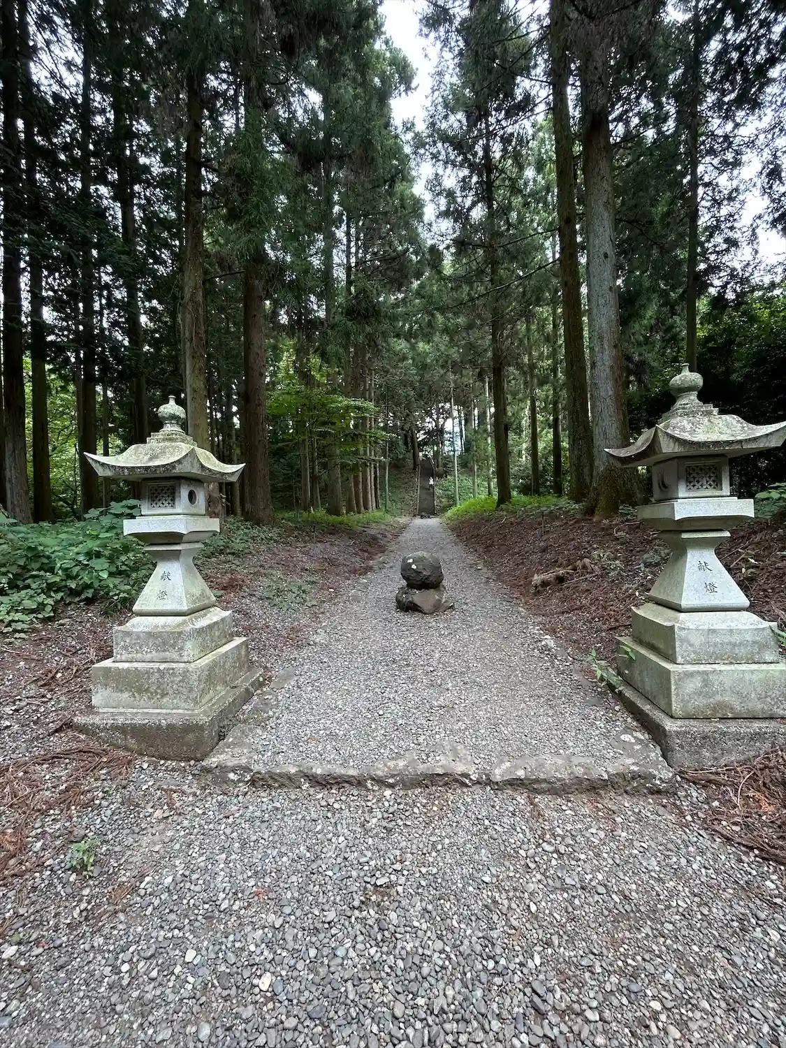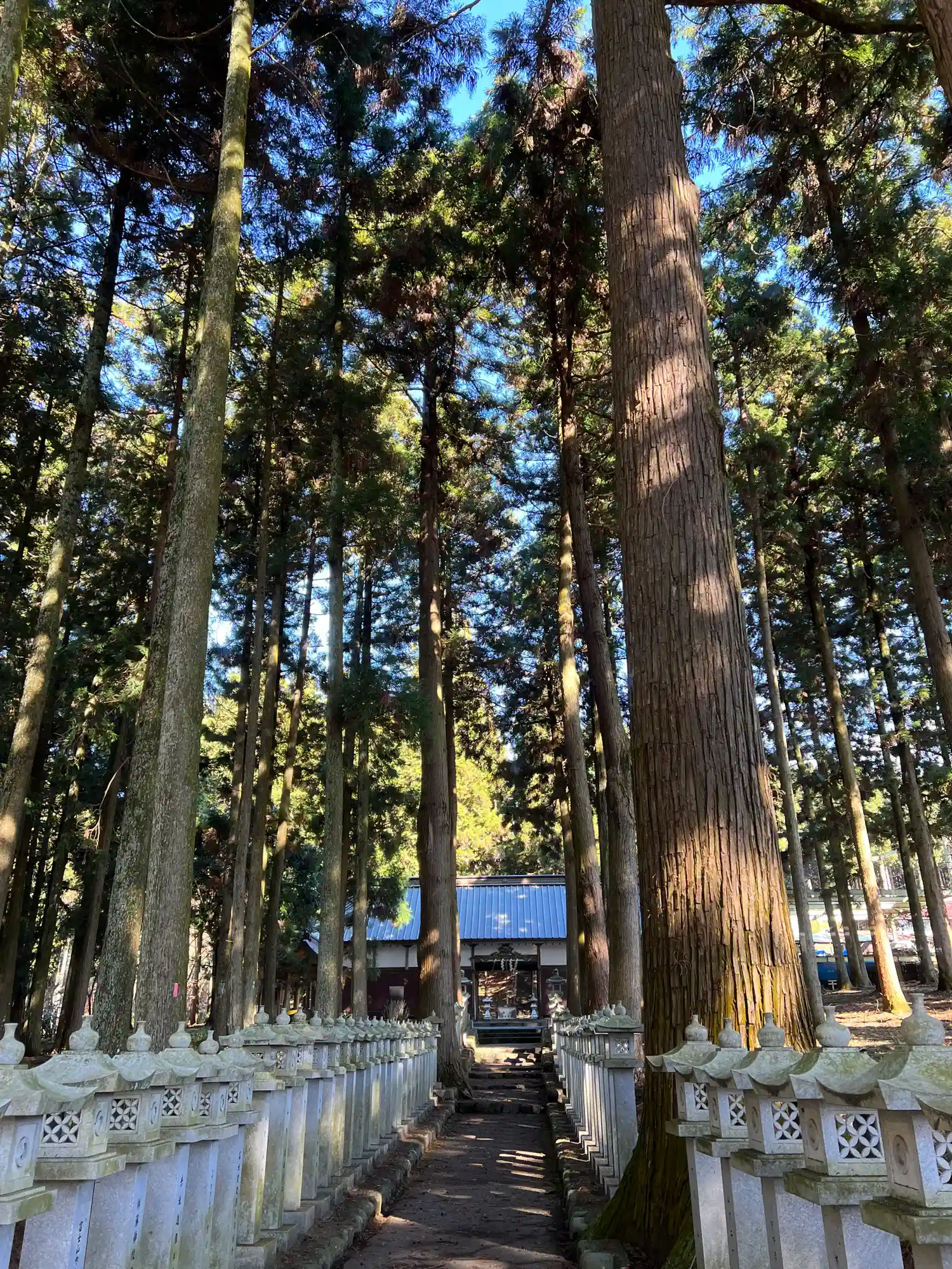 杉に囲まれた参道を進みます。
