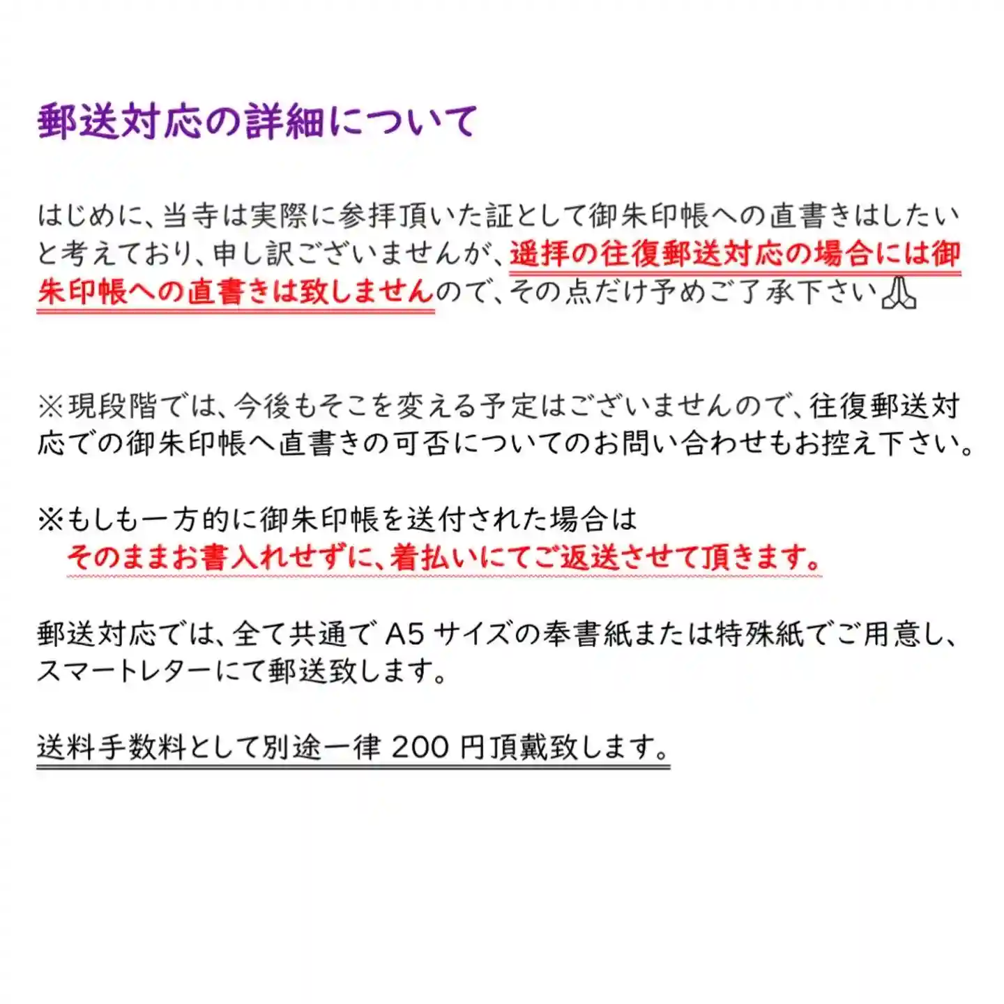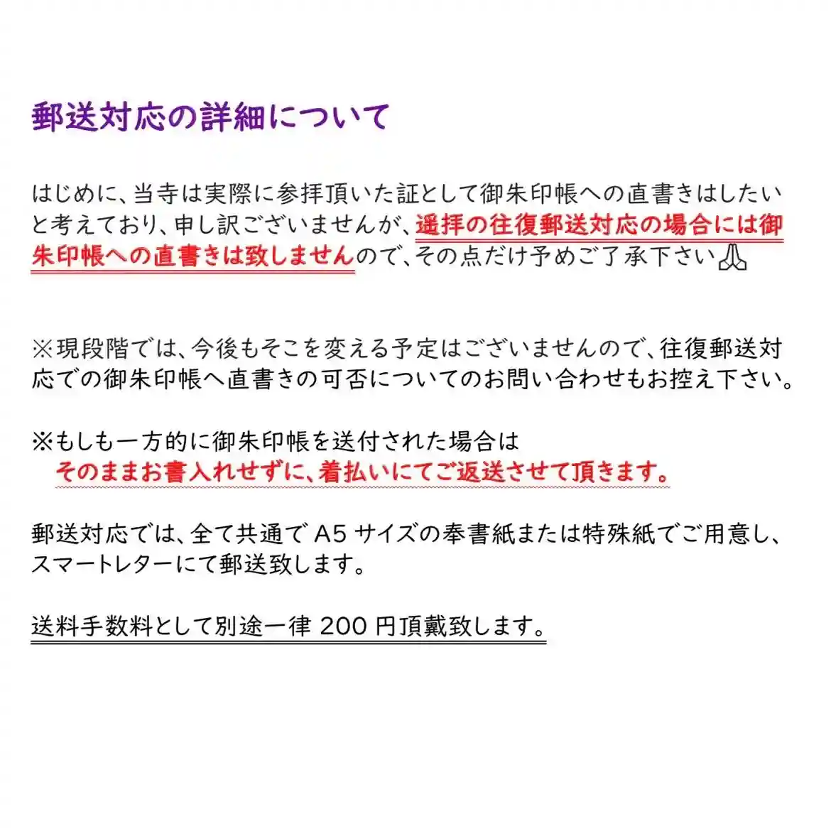 郵送対応についてのご案内①