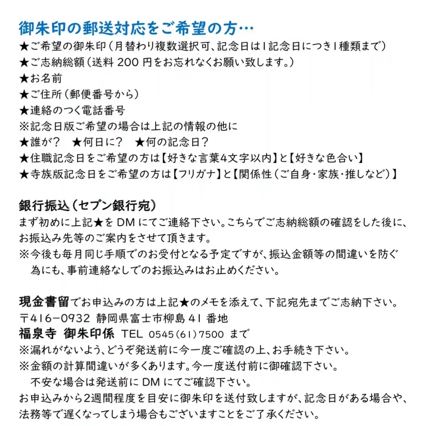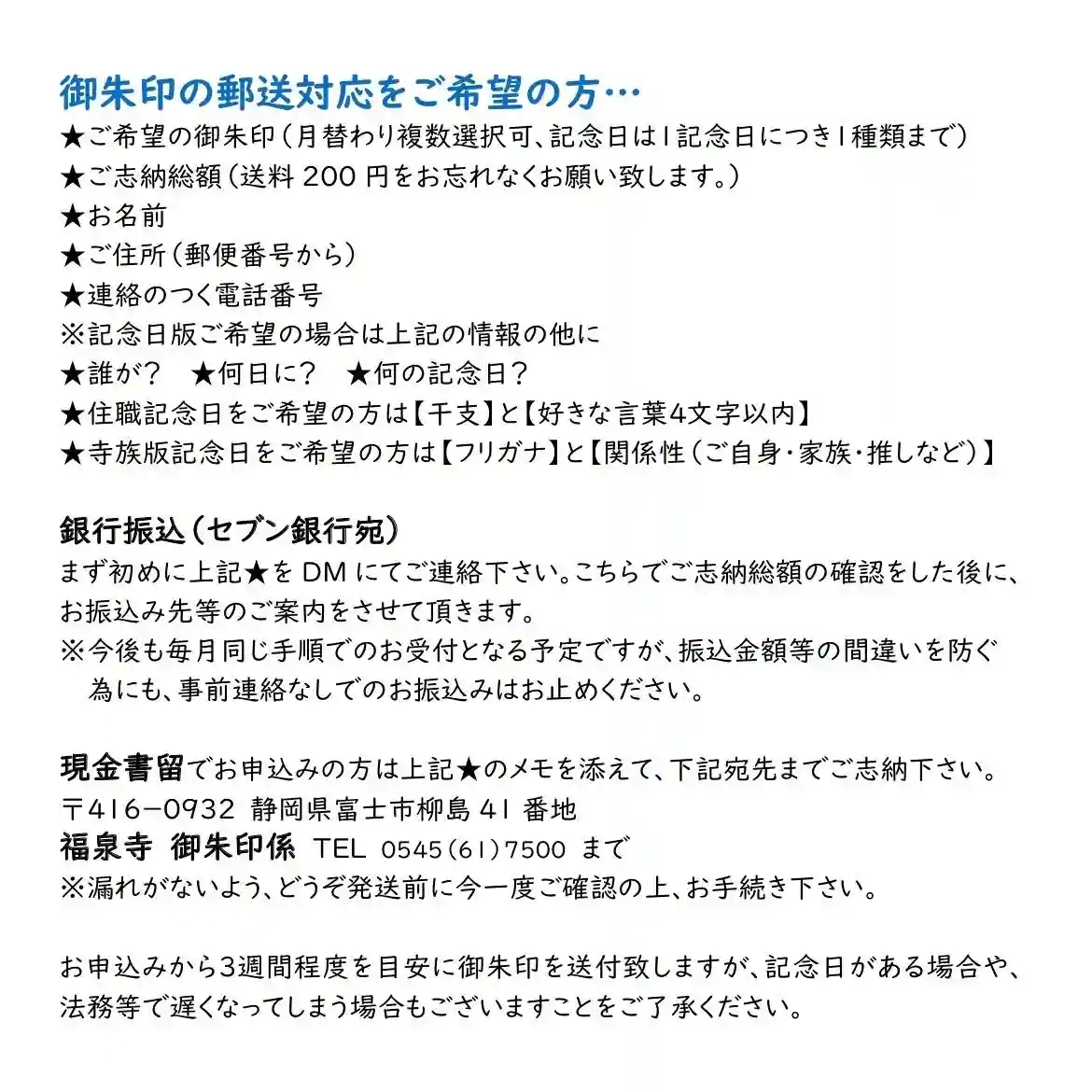 静岡県富士市の福泉寺です。カラフルな御朱印を書いてくれるのを知り、御朱印帳とレターパックをあずけに…