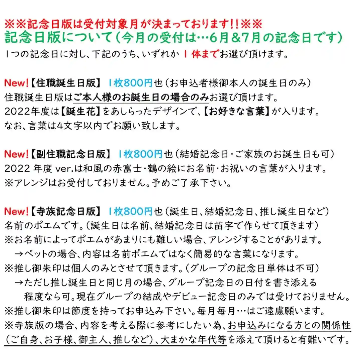 寺族誕生日 2022年度版
