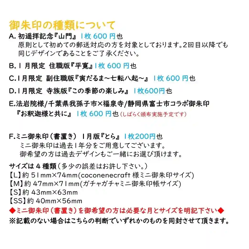 令和8年1月、2月月替り寺族御朱印