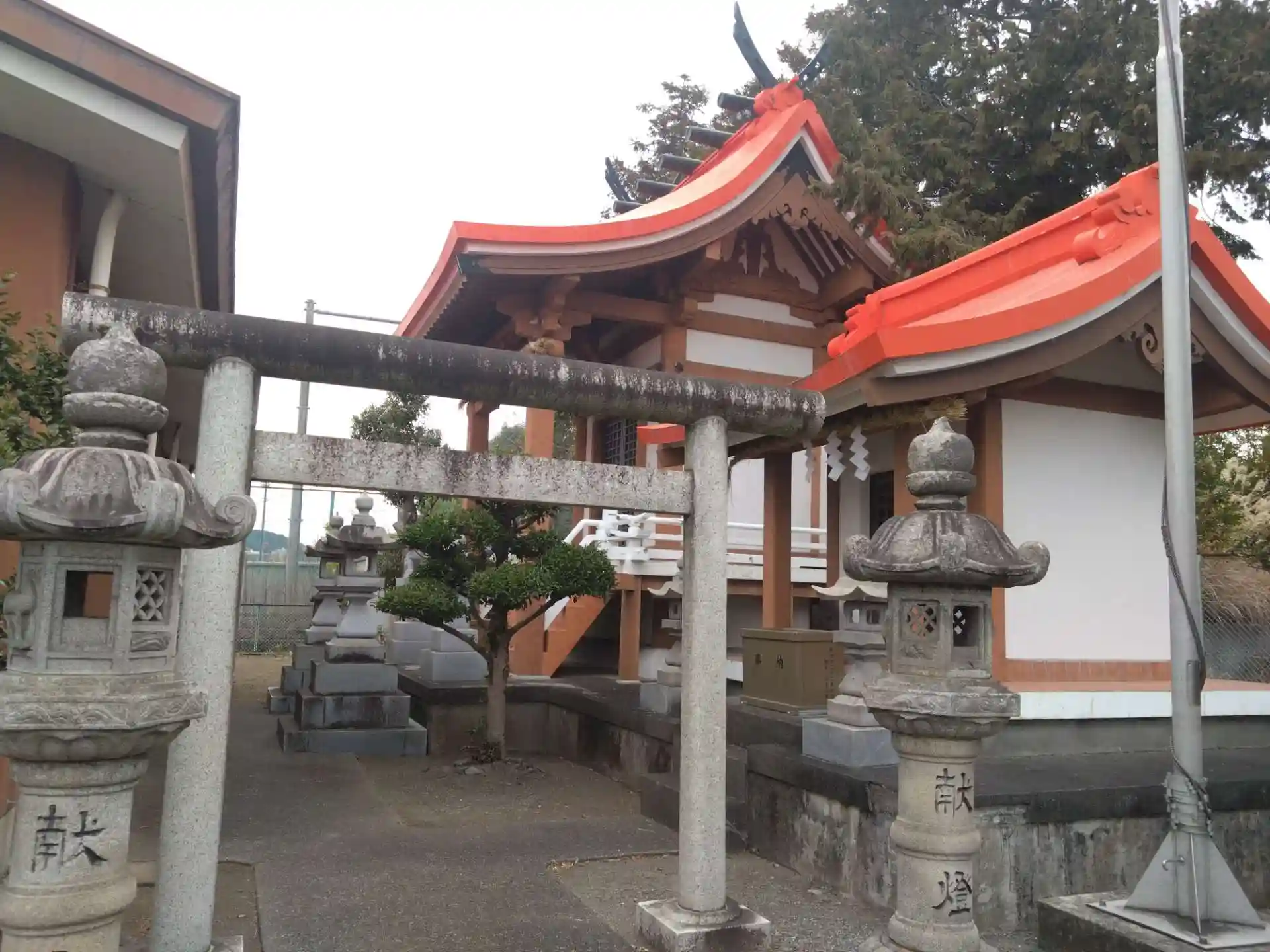 朱色と言うよりオレンジ色の様な社殿が綺麗でした。同じ様に隣に山神社の社殿が並んでいました。