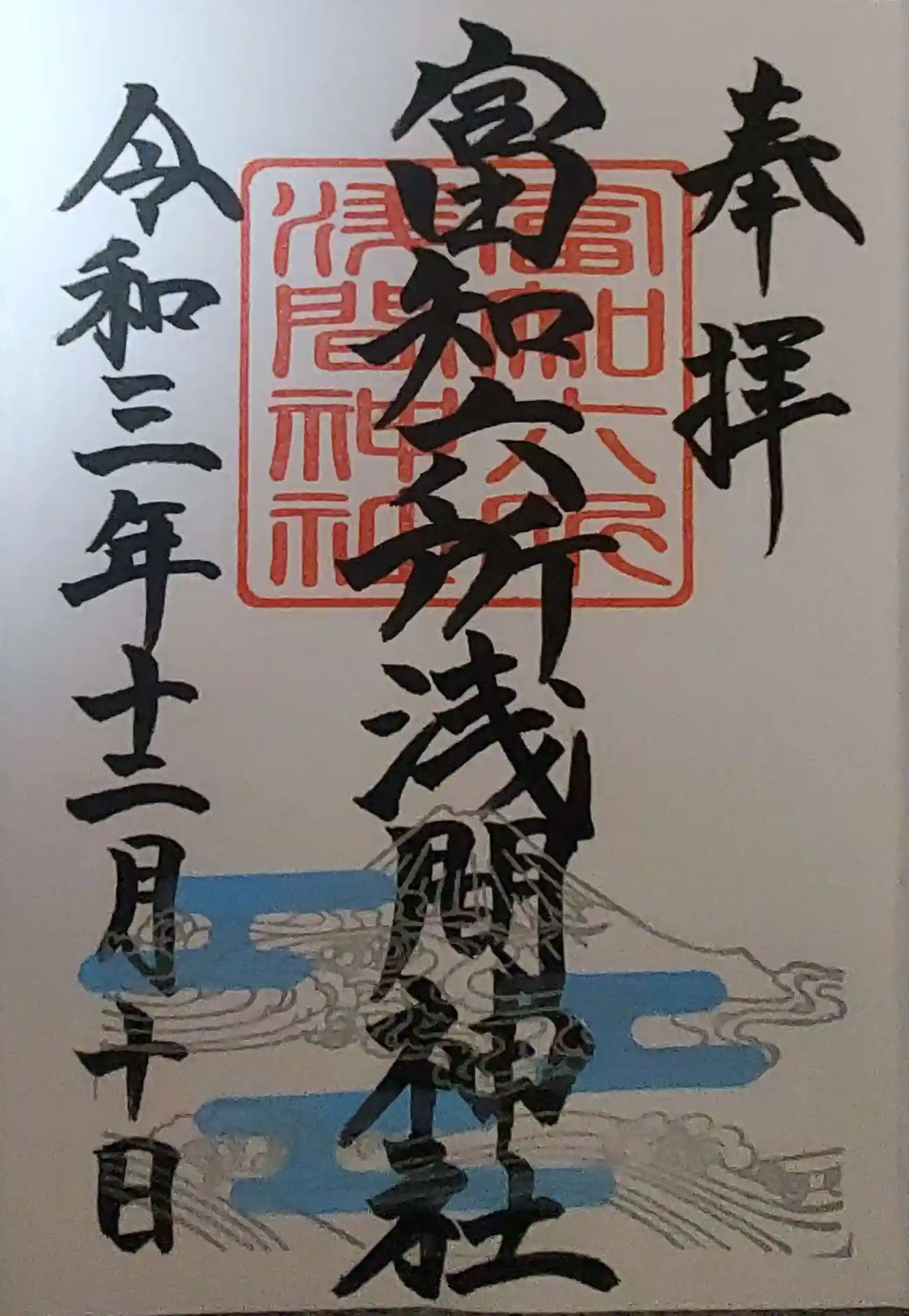 銀雪富士山年末特別御朱印と富知六所浅間神社の富士山(橙)一日参り特別御朱印を頂きました。