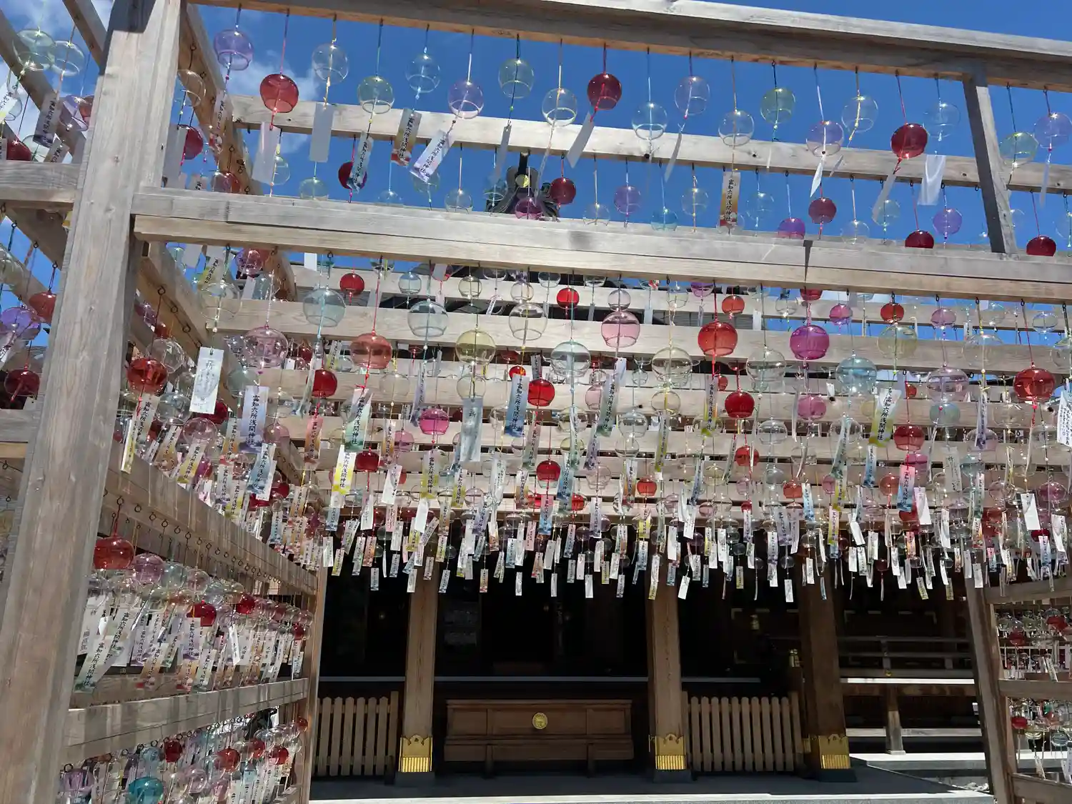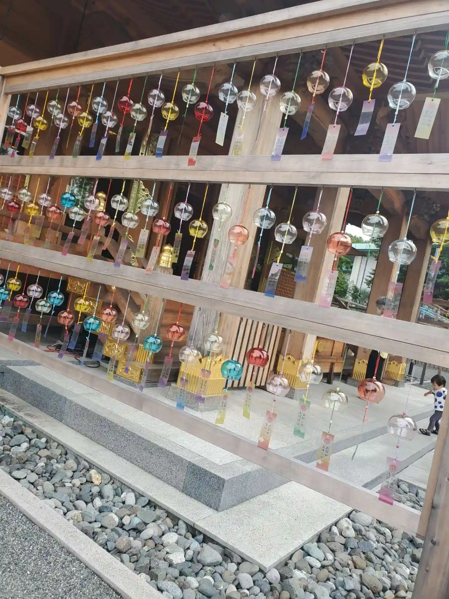 本殿前に風鈴棚^^ 時折吹く風に一斉にサウンド奏でて心地よい^^