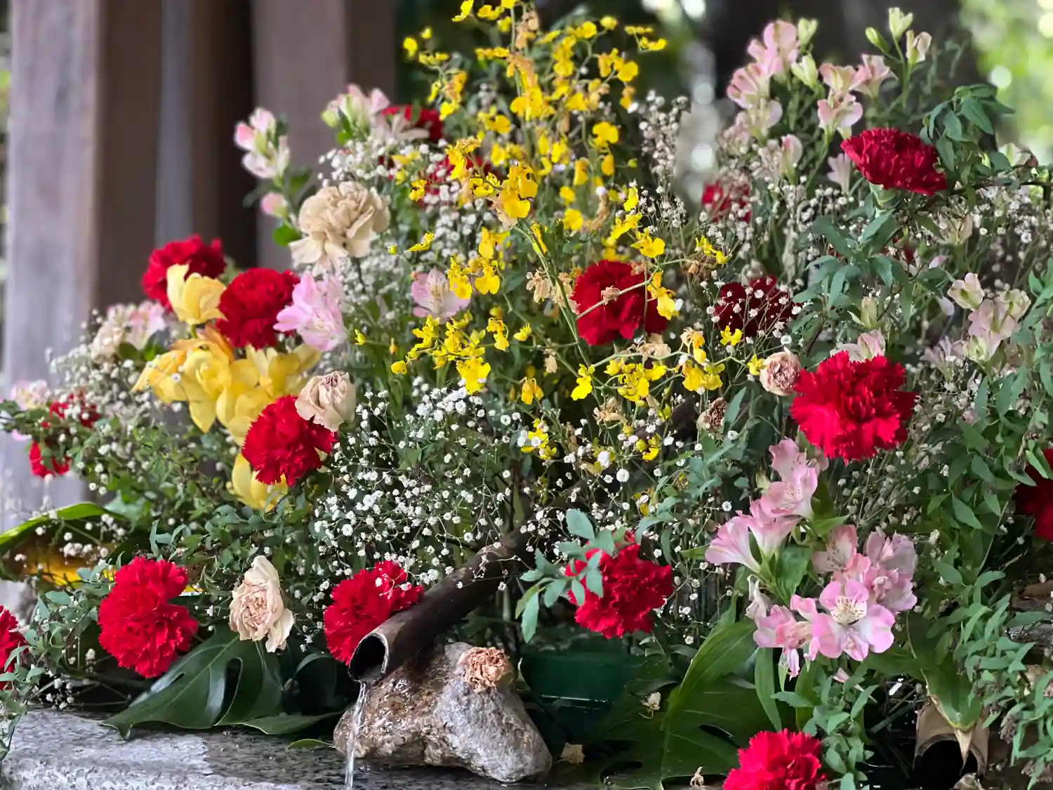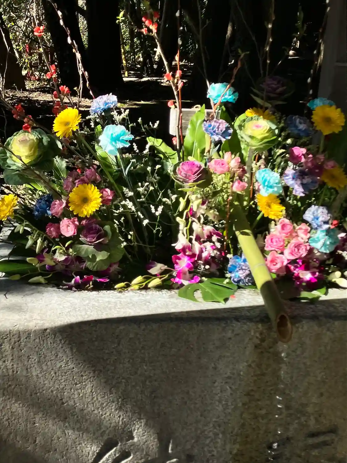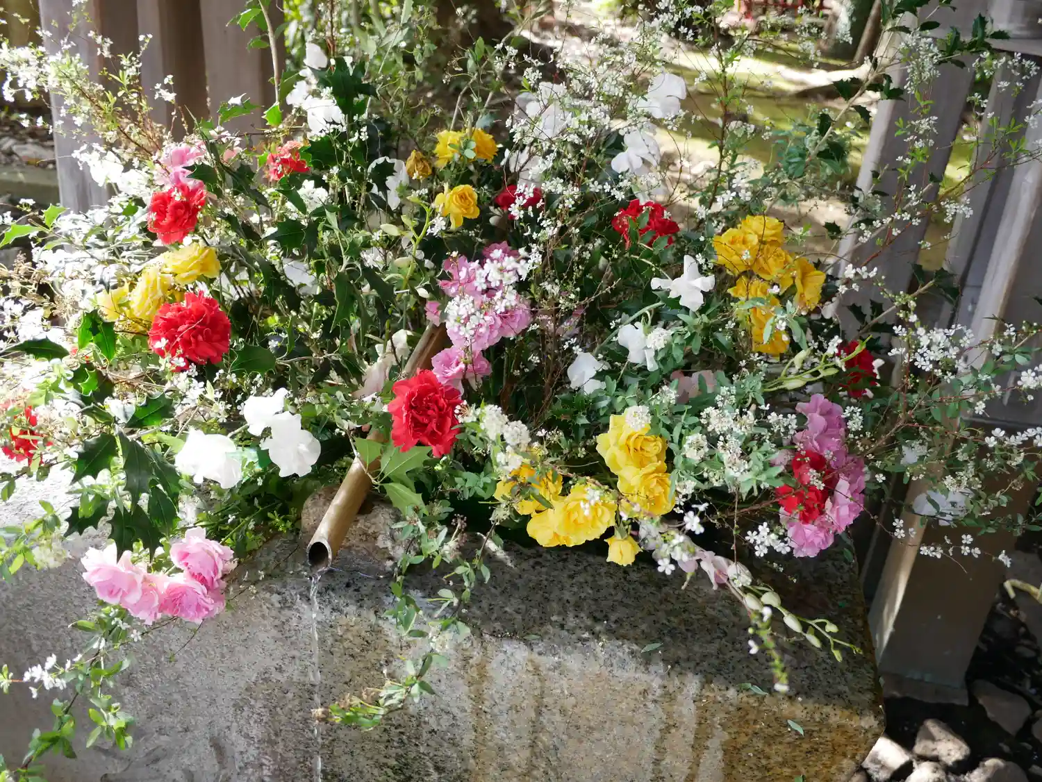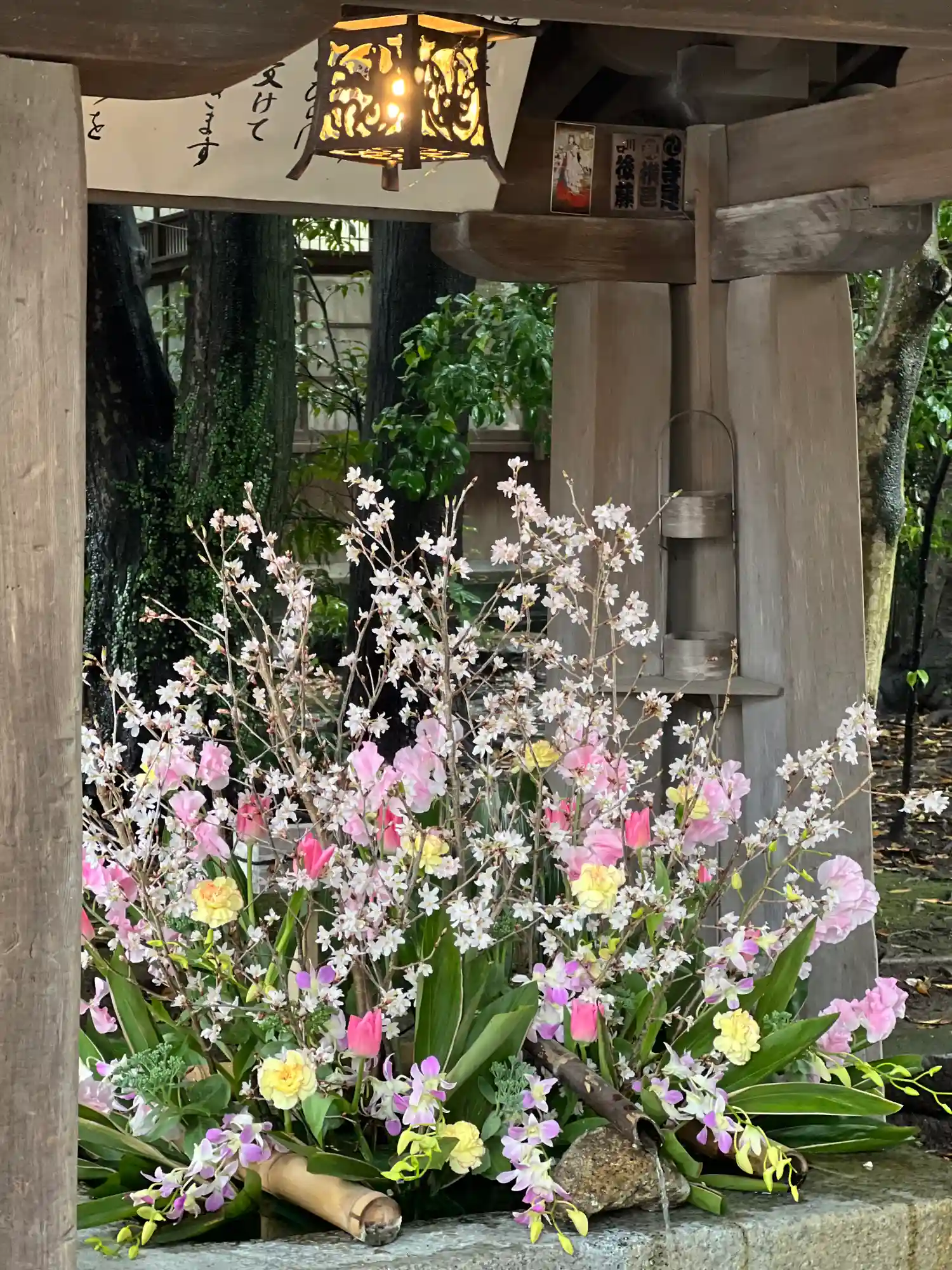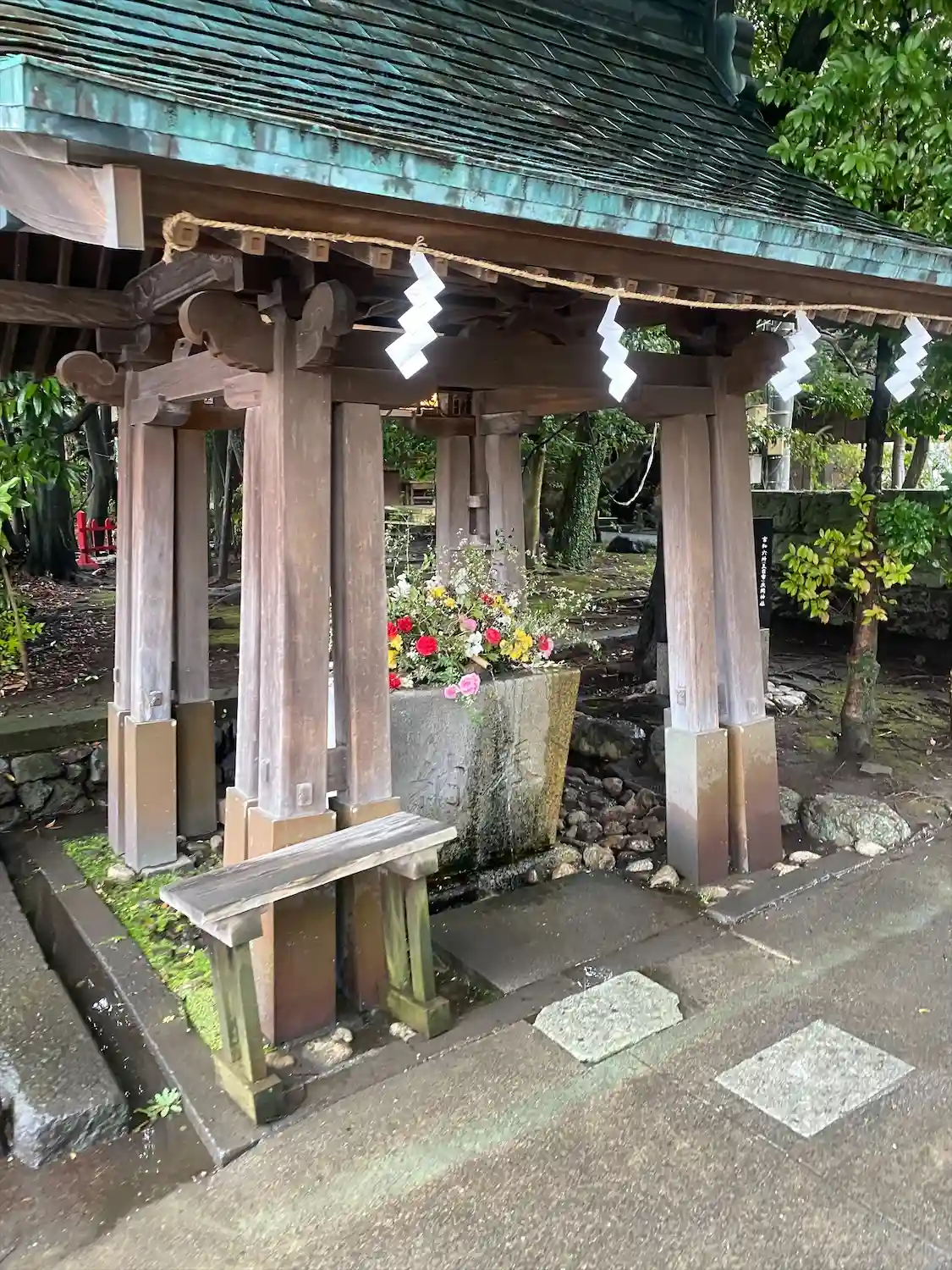いつも来ても花手水が綺麗になっていて入口…
