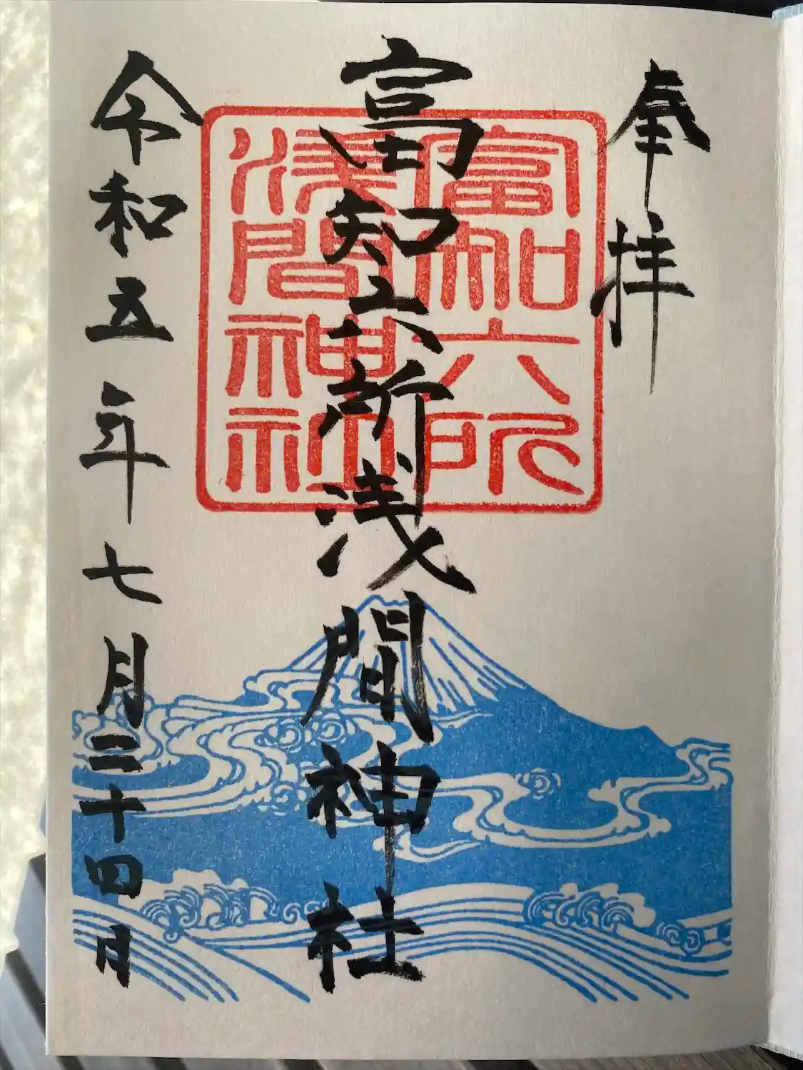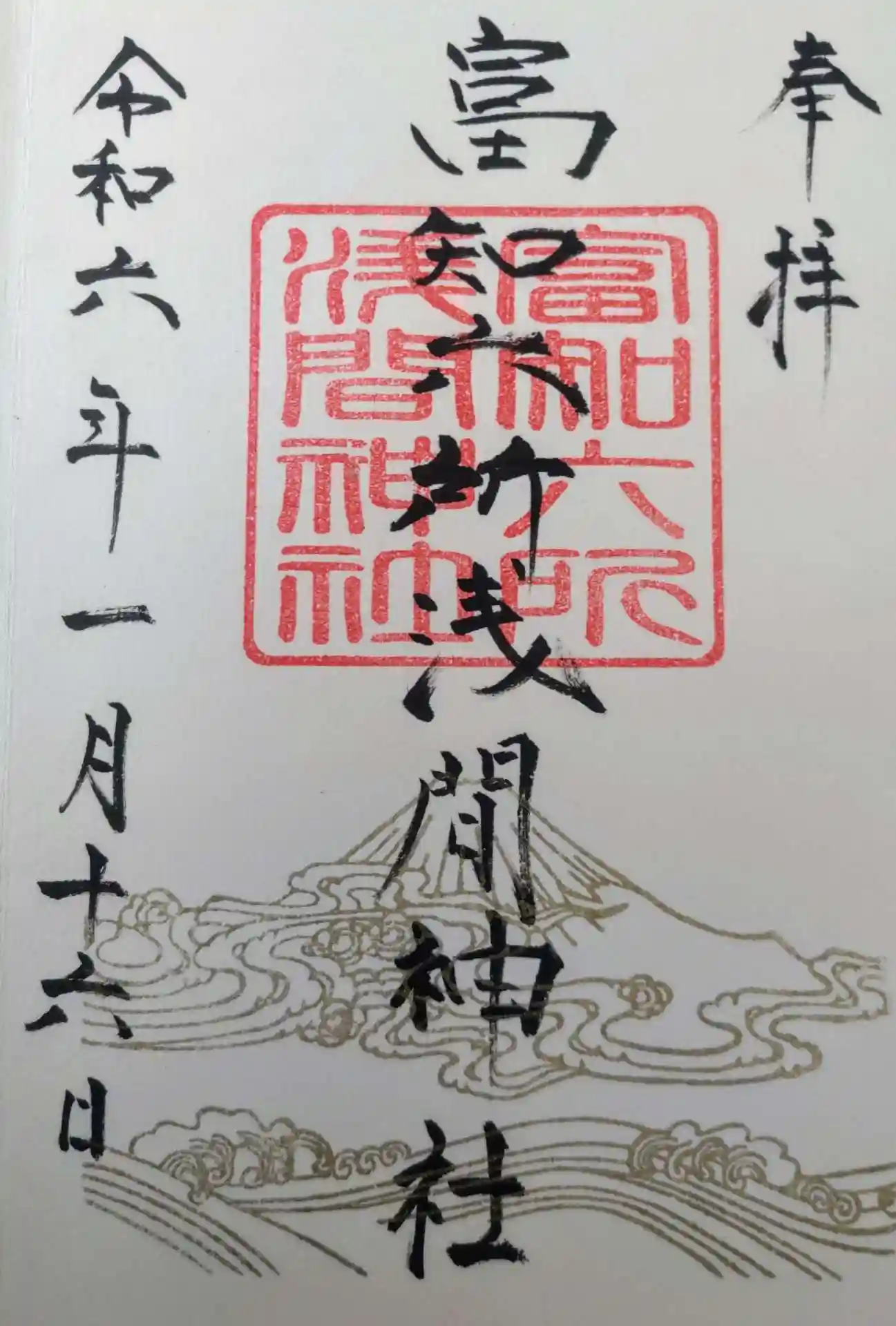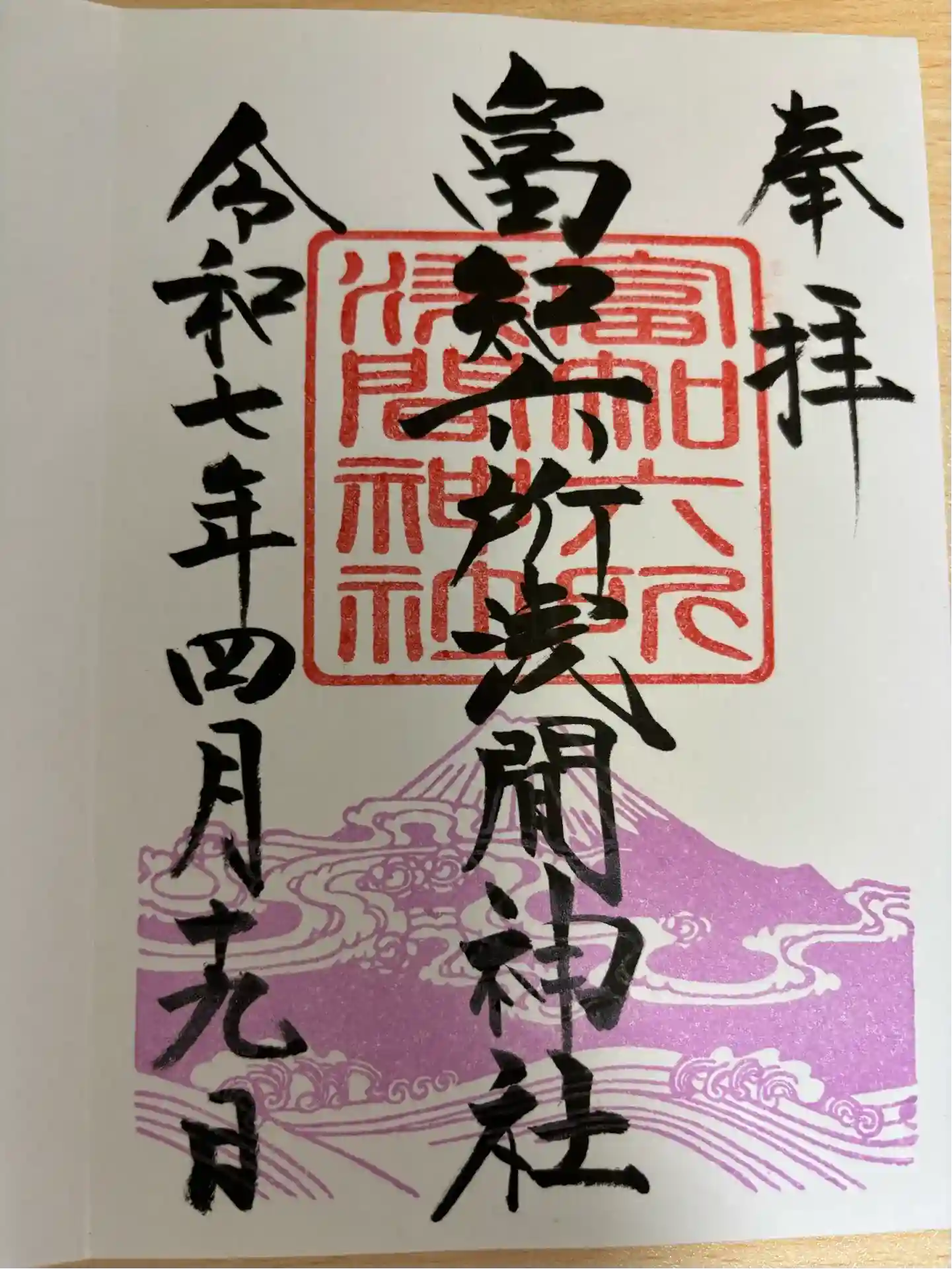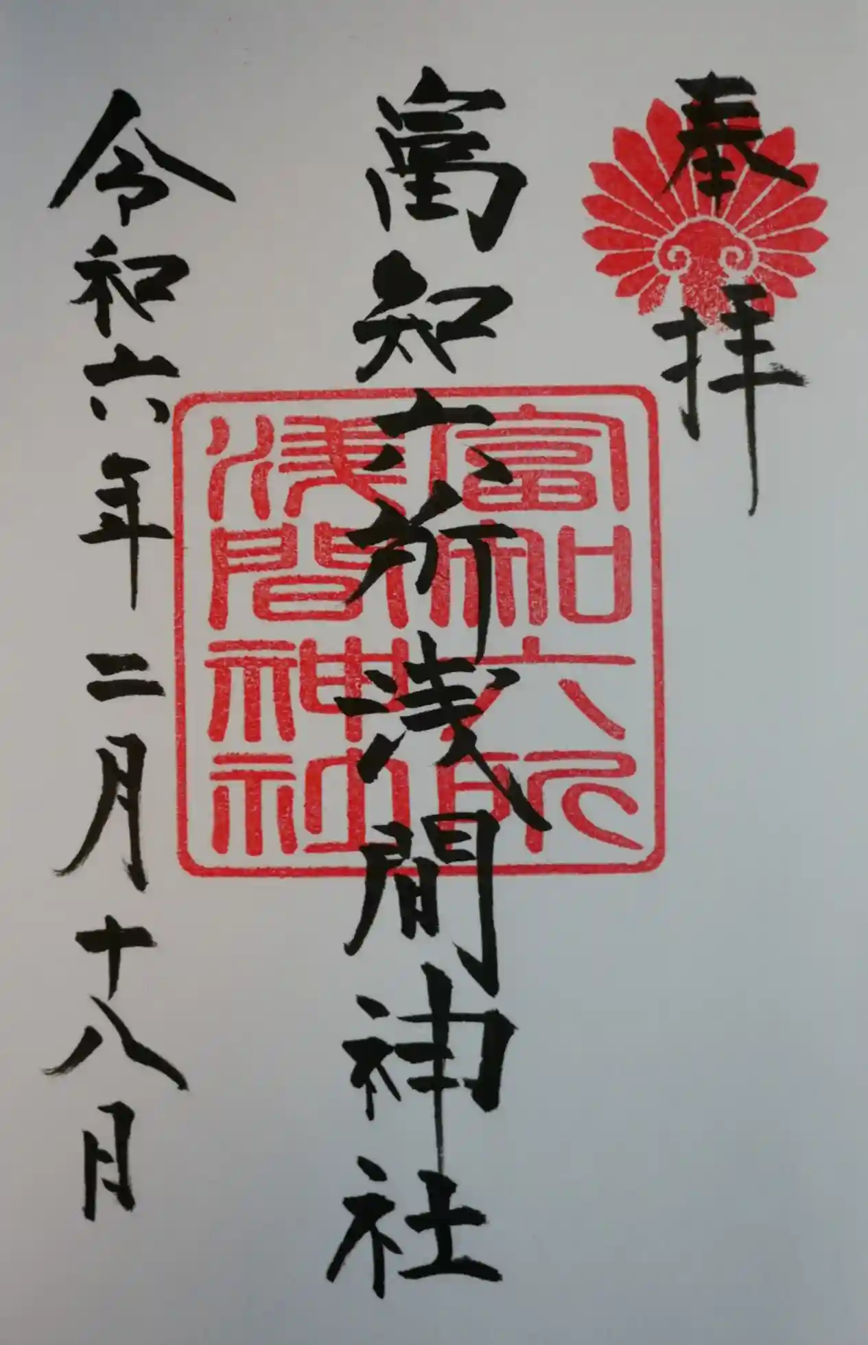 正式名称の富知六所浅間神社の直書きでいただきました。