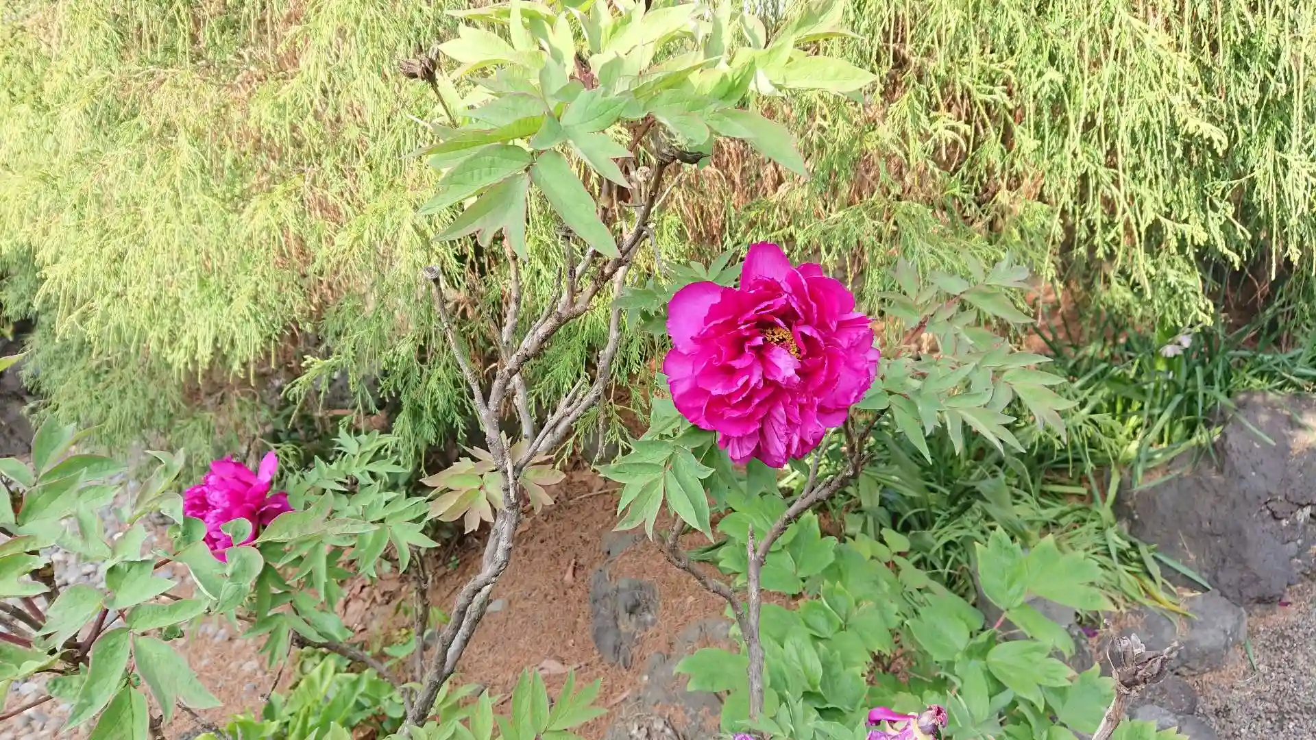 中央奥に蓮の花の準備中です。