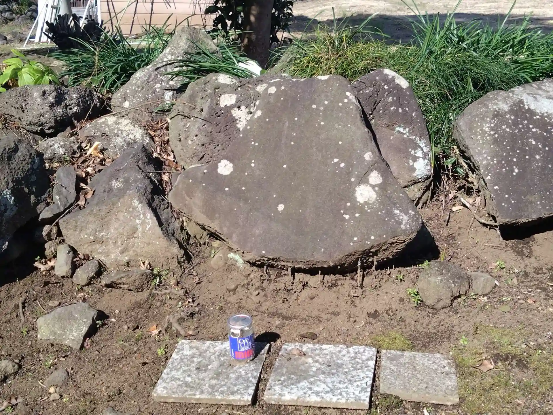 畑の中に祠がありました。詳しいことは何もわかりません。ただ隣にあった石は何かなと思ったら、どうも富士山の形をしていて祀られてるようです。