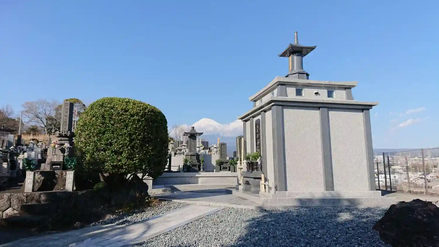 広い境内の駐車場あたりから、富士市の街並み