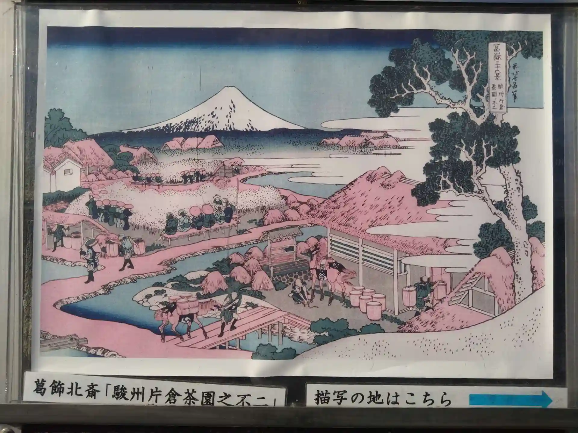 裏山から葛飾北斎が描写した景色がありますが、雲がかかり富士山がよく見えませんでした。