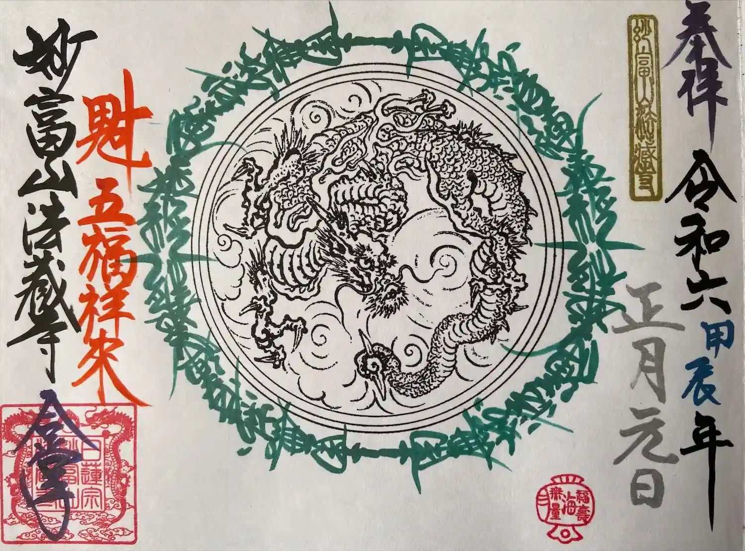 過去に伺って頂いた書き置きの御首題になります。