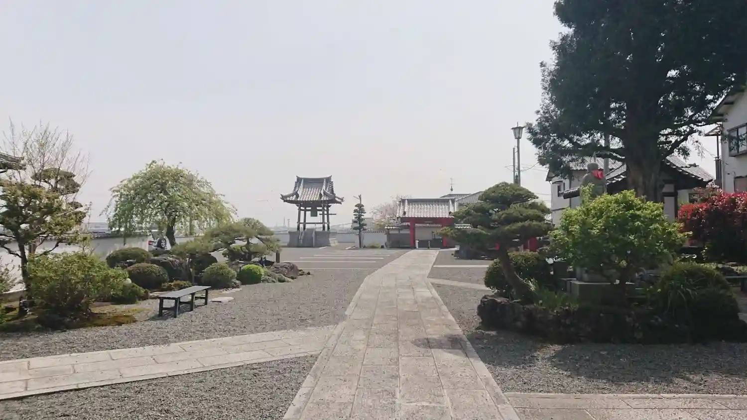 本堂から見える景色、山門と鐘突堂