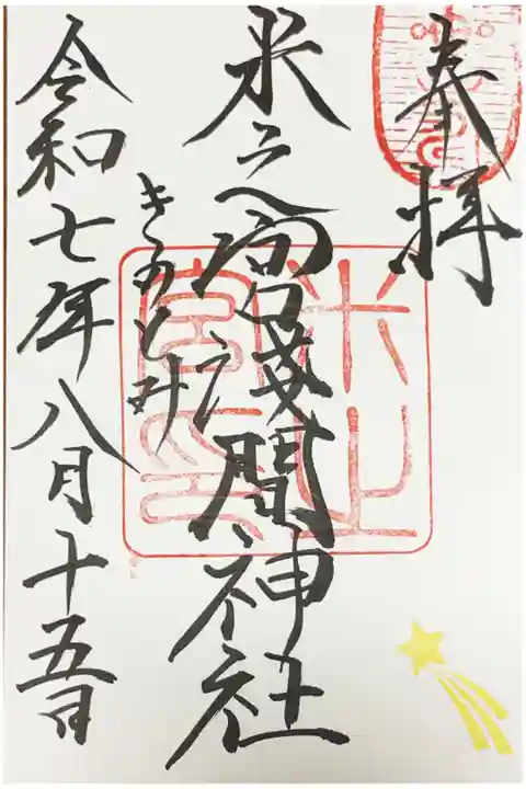 通常御朱印を書入れ、夏詣七夕祭り御朱印を書置きにて頂きました。