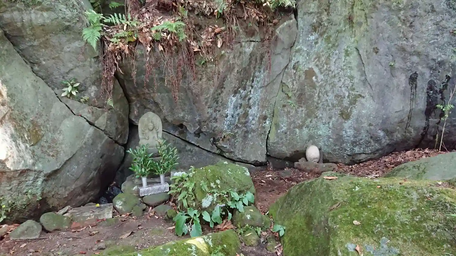 岩場の割れ目にはお堂を護っている大きな白蛇が住んいるという『白蛇伝説』が伝えられています。