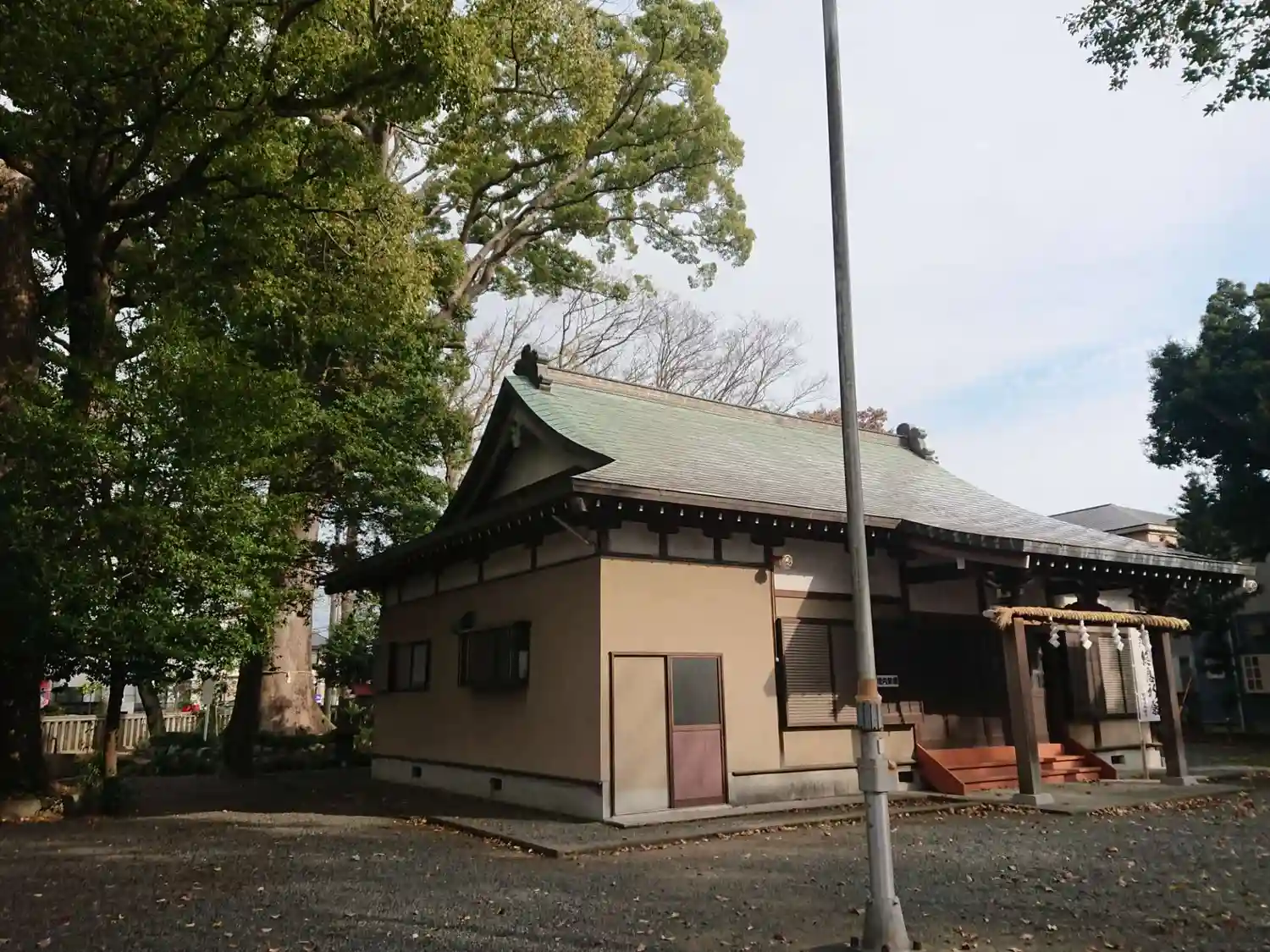 拝殿の裏少し間空いて本殿。本殿横に小さな末社と御神木。
