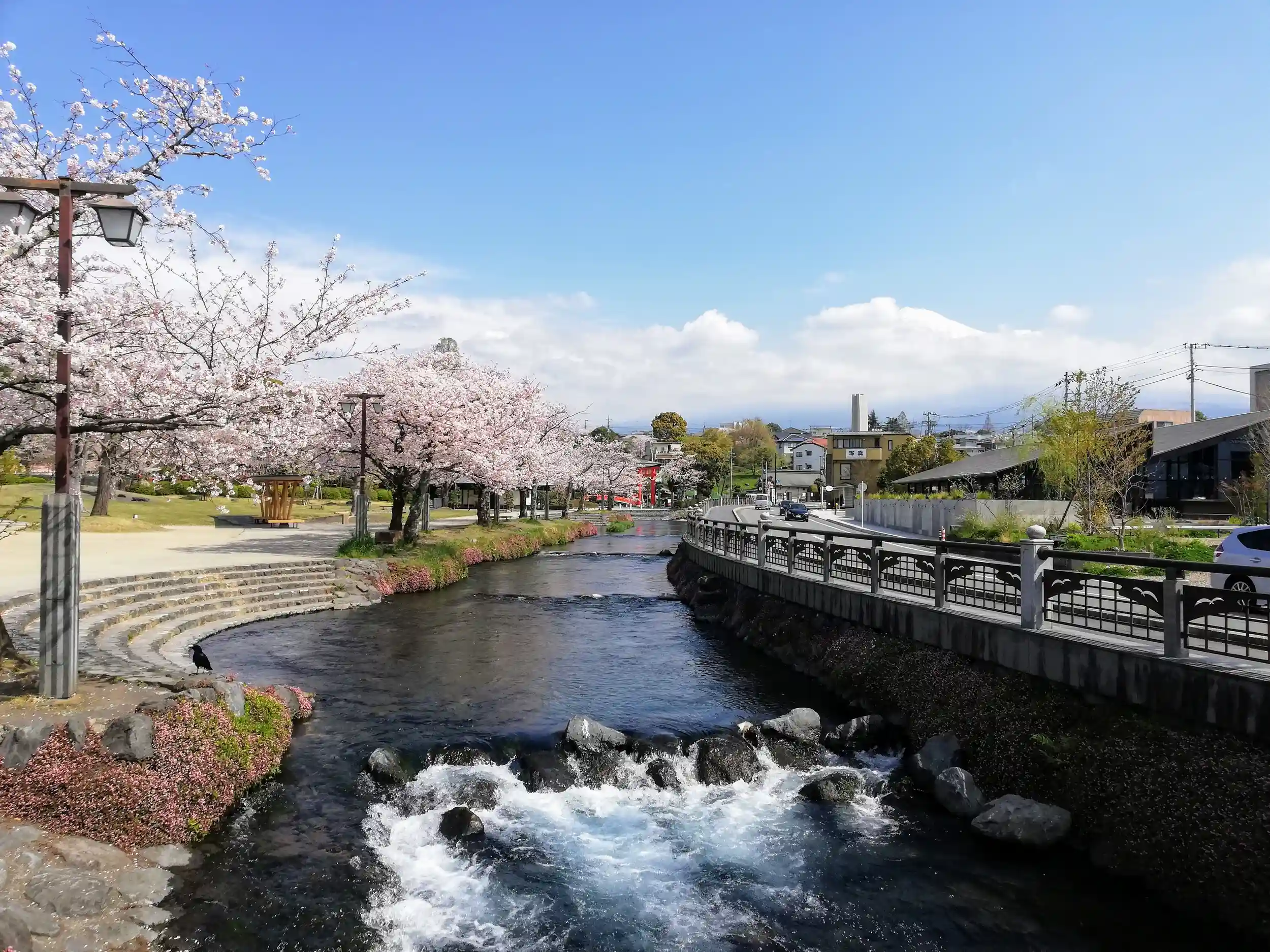 美しい御祭神、咲き乱れる桜、富士山の景観、立体感のある朱塗りの社殿、澄み渡る湧水、きれいな空気。。。「美しい」という形容がこれほど似合う神社もなかなかないです。