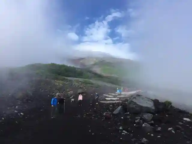 富士吉田ルートで五合目からスタート、天気が悪く途中雨にも見舞われましたが、無事に…