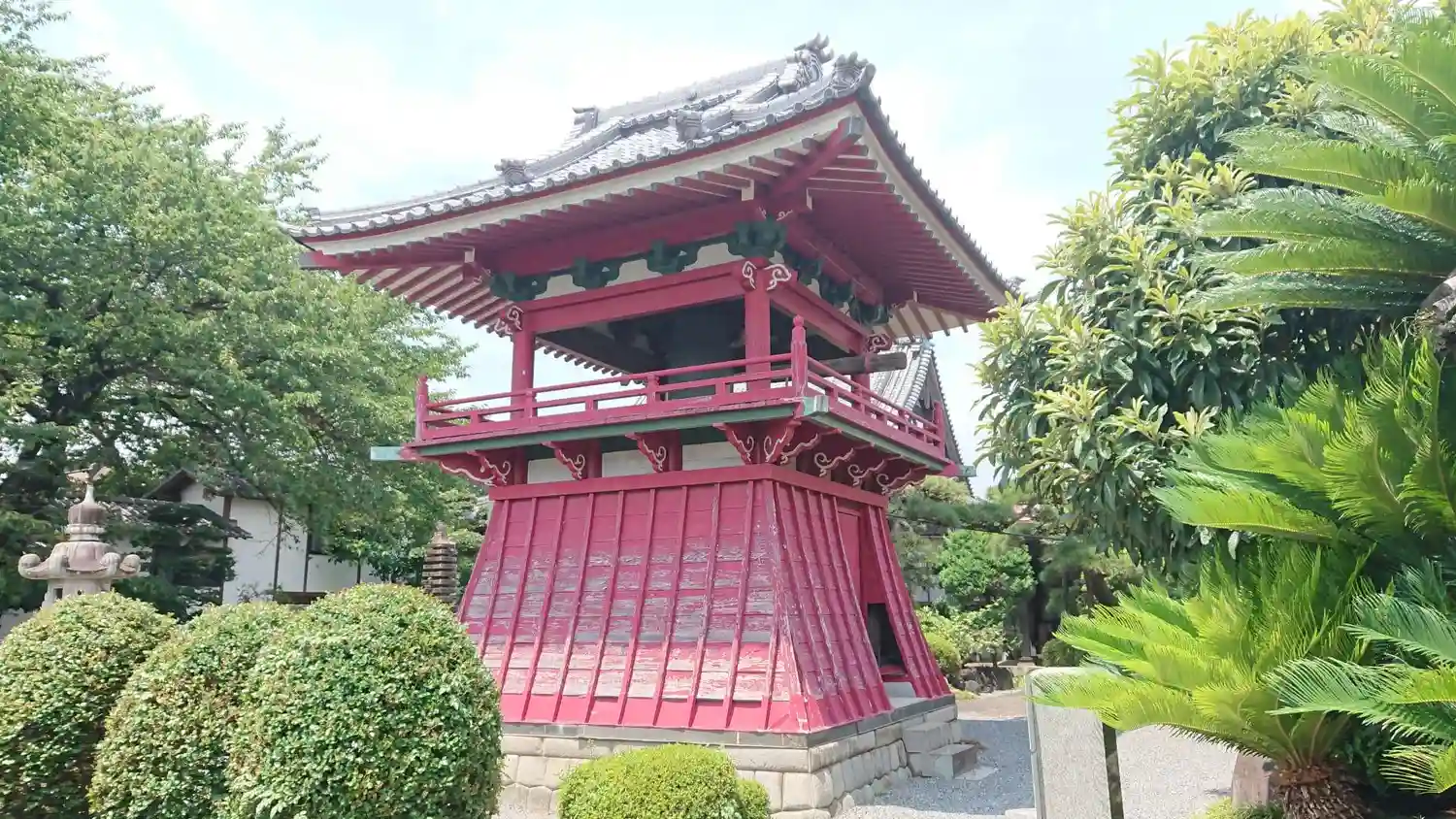 右手に朱塗りの鐘突堂