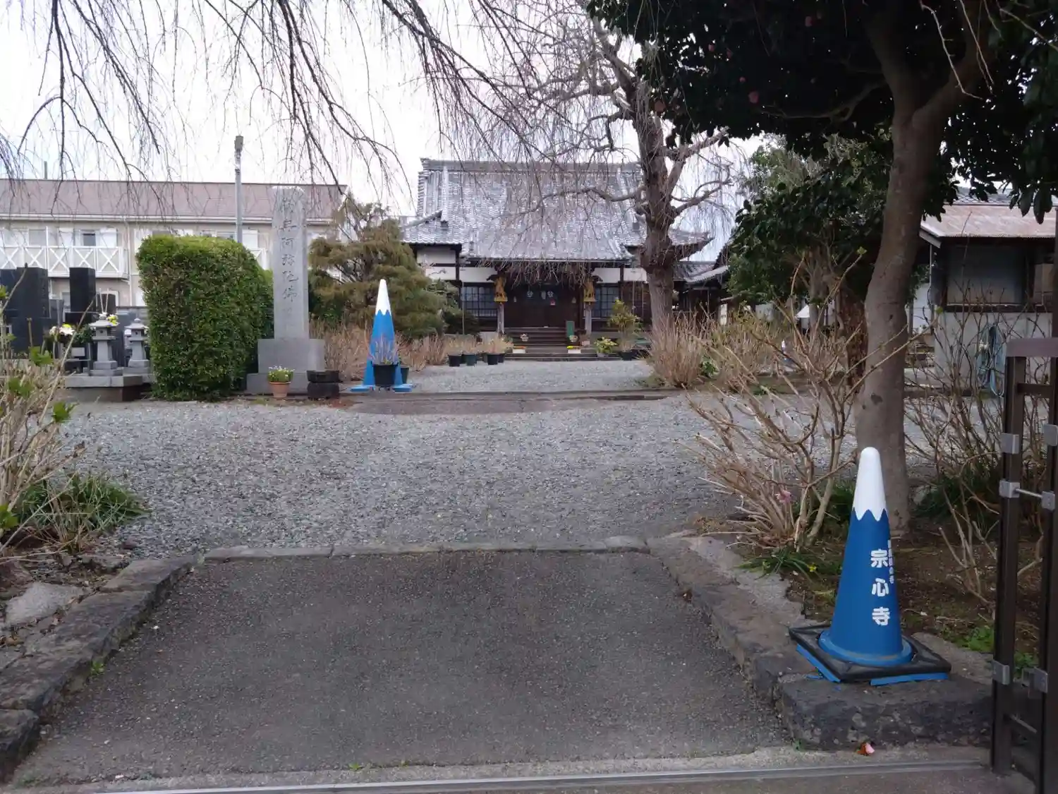 立派な本堂がありました。境内にはしだれ桜がありましたが、まだ咲いてはいませんでした。