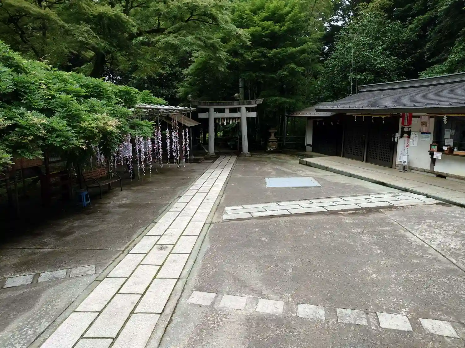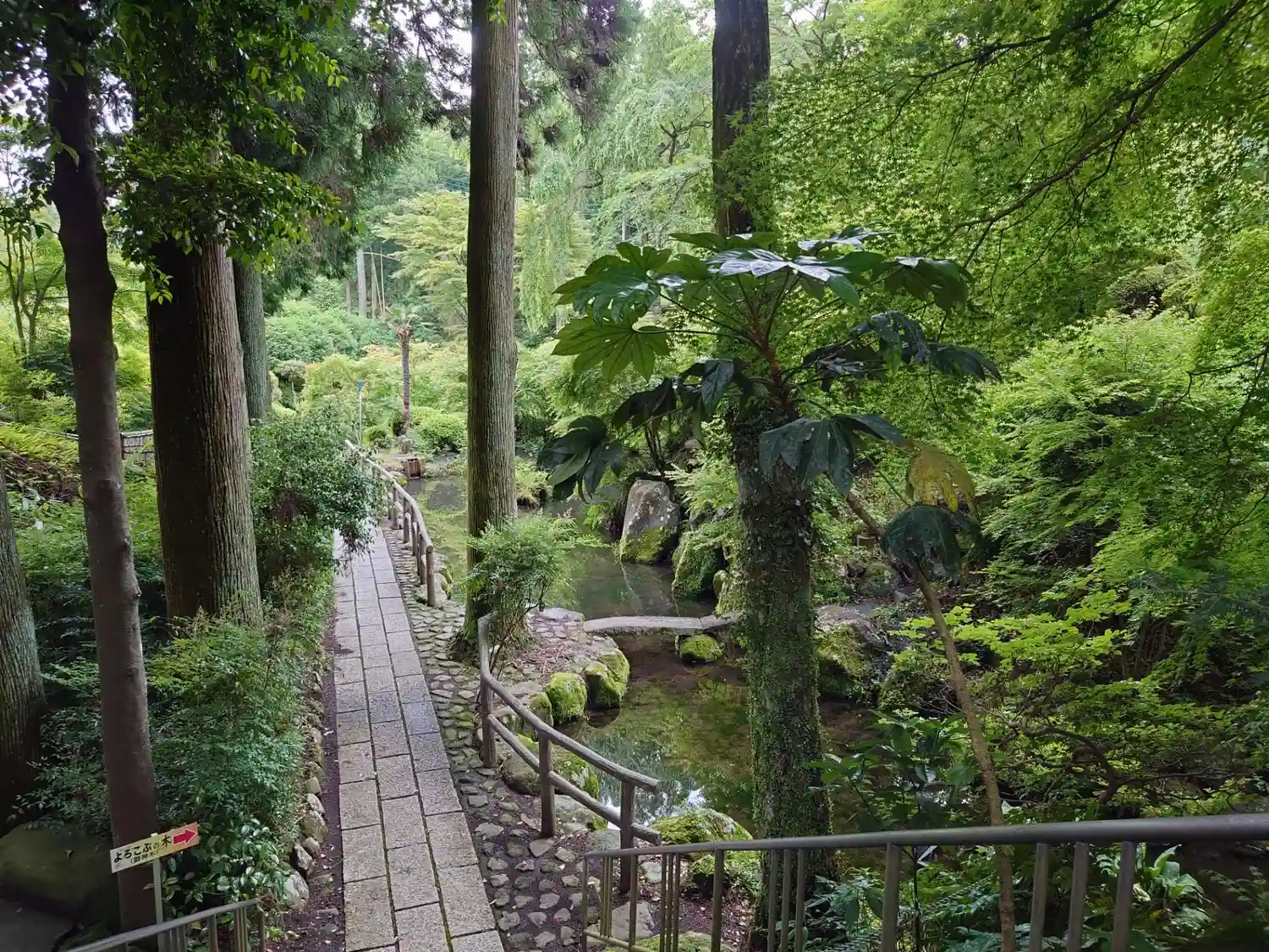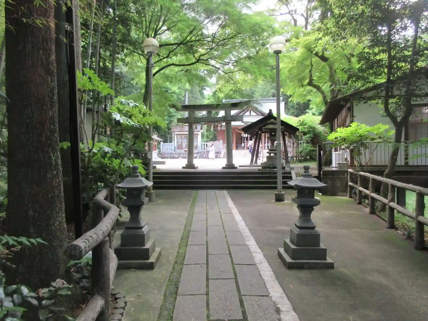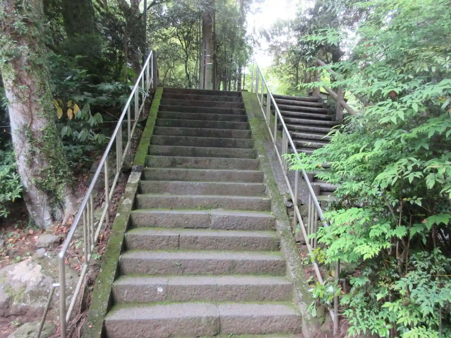 駐車場から階段を下り林のような庭園のような参道を通って拝殿に向かいます。